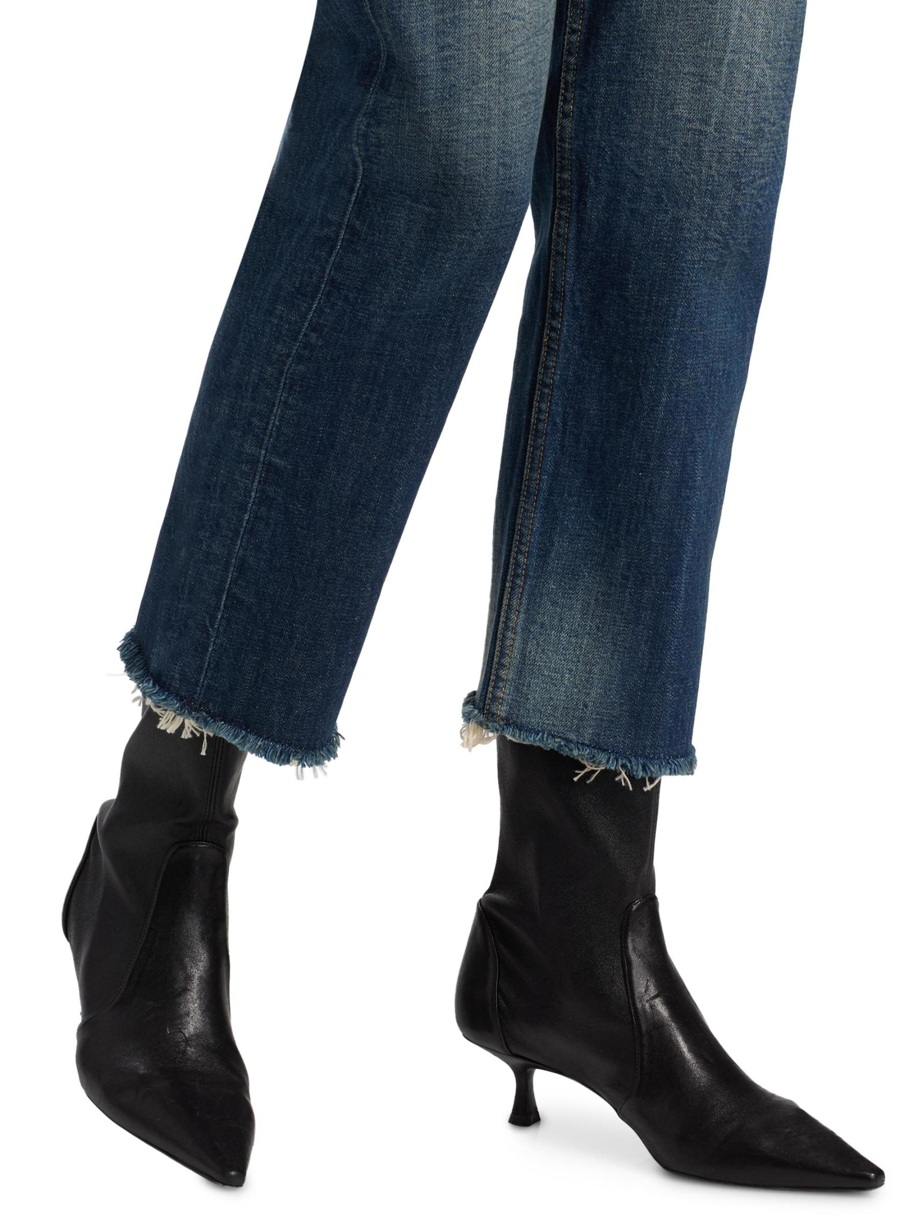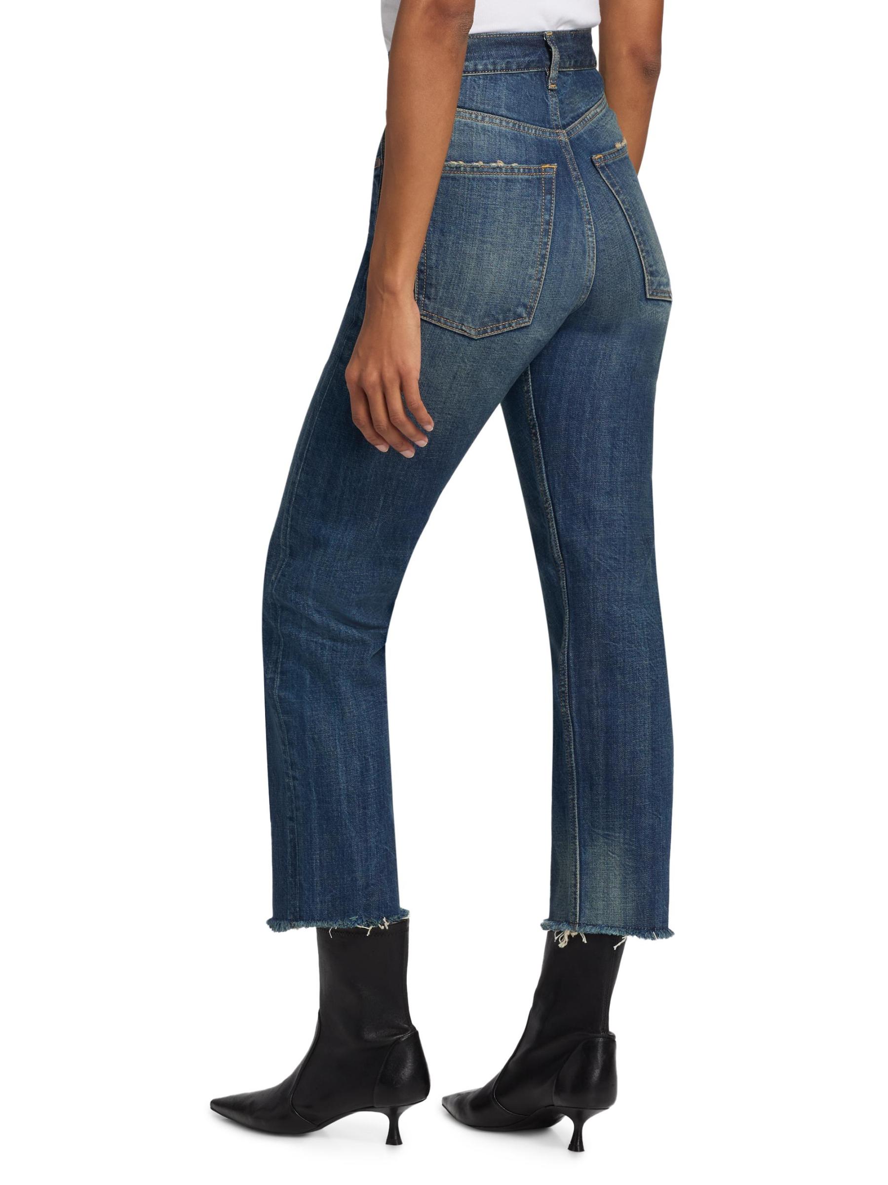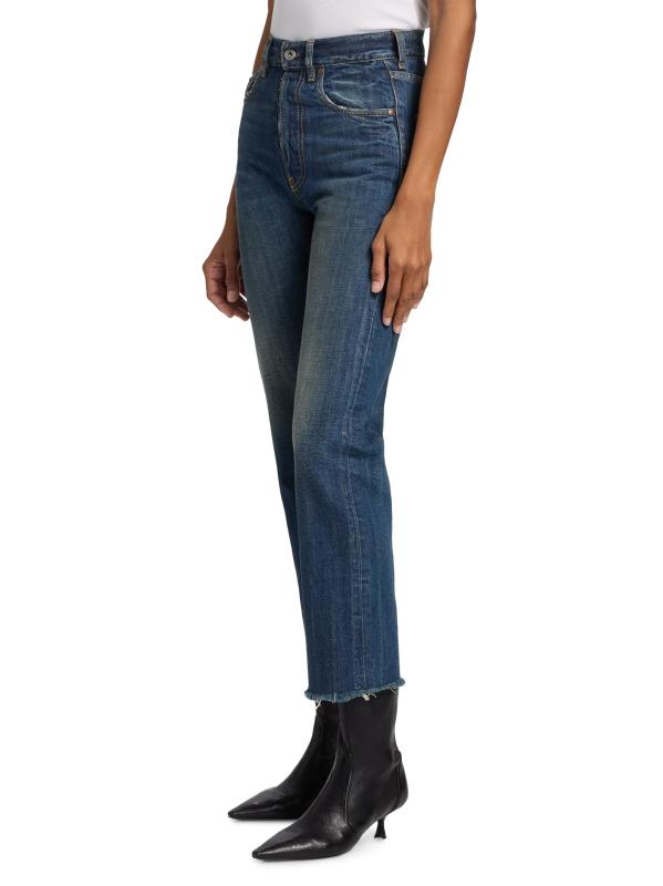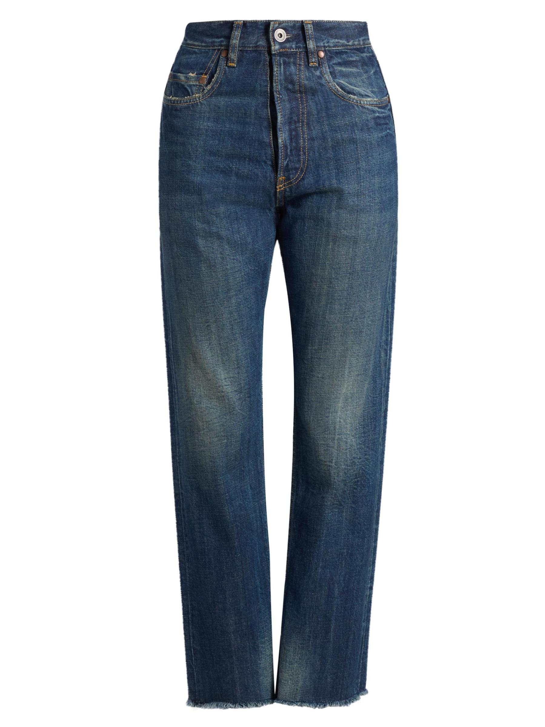 هذا الجينز الداكن من Maison Margiela مصنوع من القطن ويتميز بطراز كلاسيكي بخمسة جيوب مع حافة مهترئة.