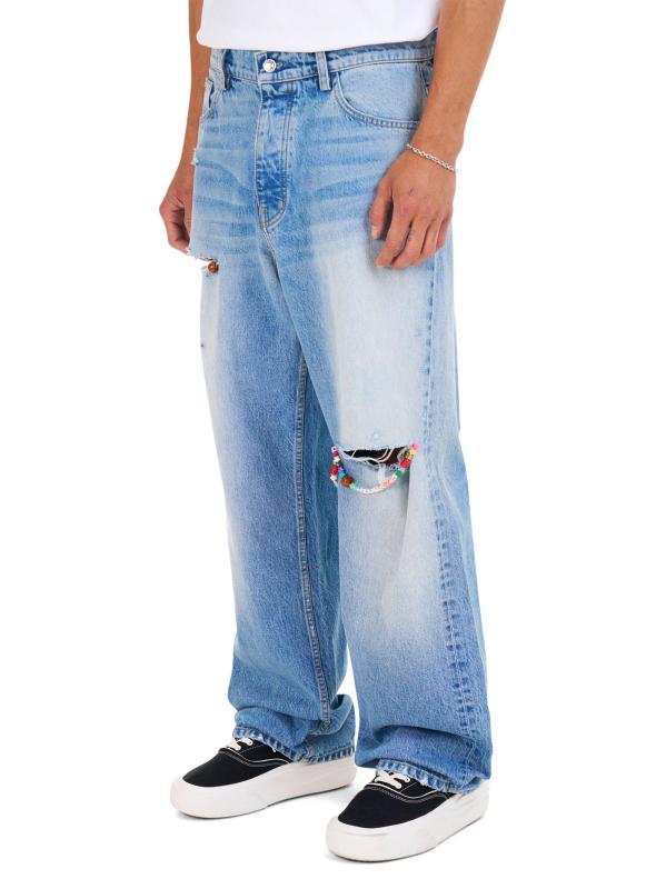 يتميز بنطال فريندشيب هذا المصنوع من الدنيم القطني من Nahmias بلمسات ممزقة مع تفاصيل مستوحاة من سوار الصداقة.