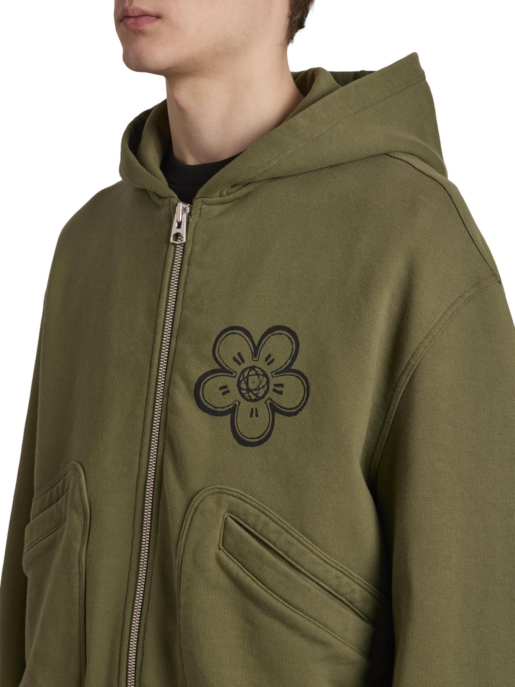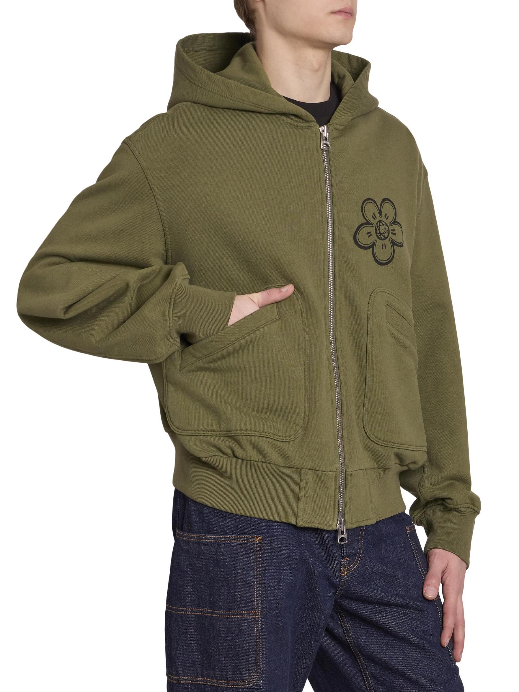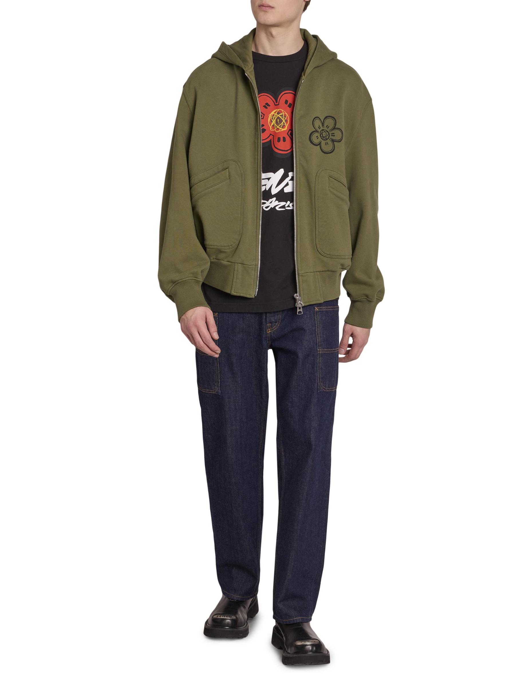 تتميّز هذه السترة المصنوعة من القطن المرن بسحّاب كامل برسم شعار Kenzo's Futura Flower على الجهة اليسرى من الصدر. تضفي الزخرفة المحبوكة على شكل أضلاع والجيوب الجانبية المائلة مزيدًا من الراحة لهذا النمط الصندوقي.