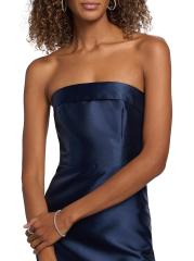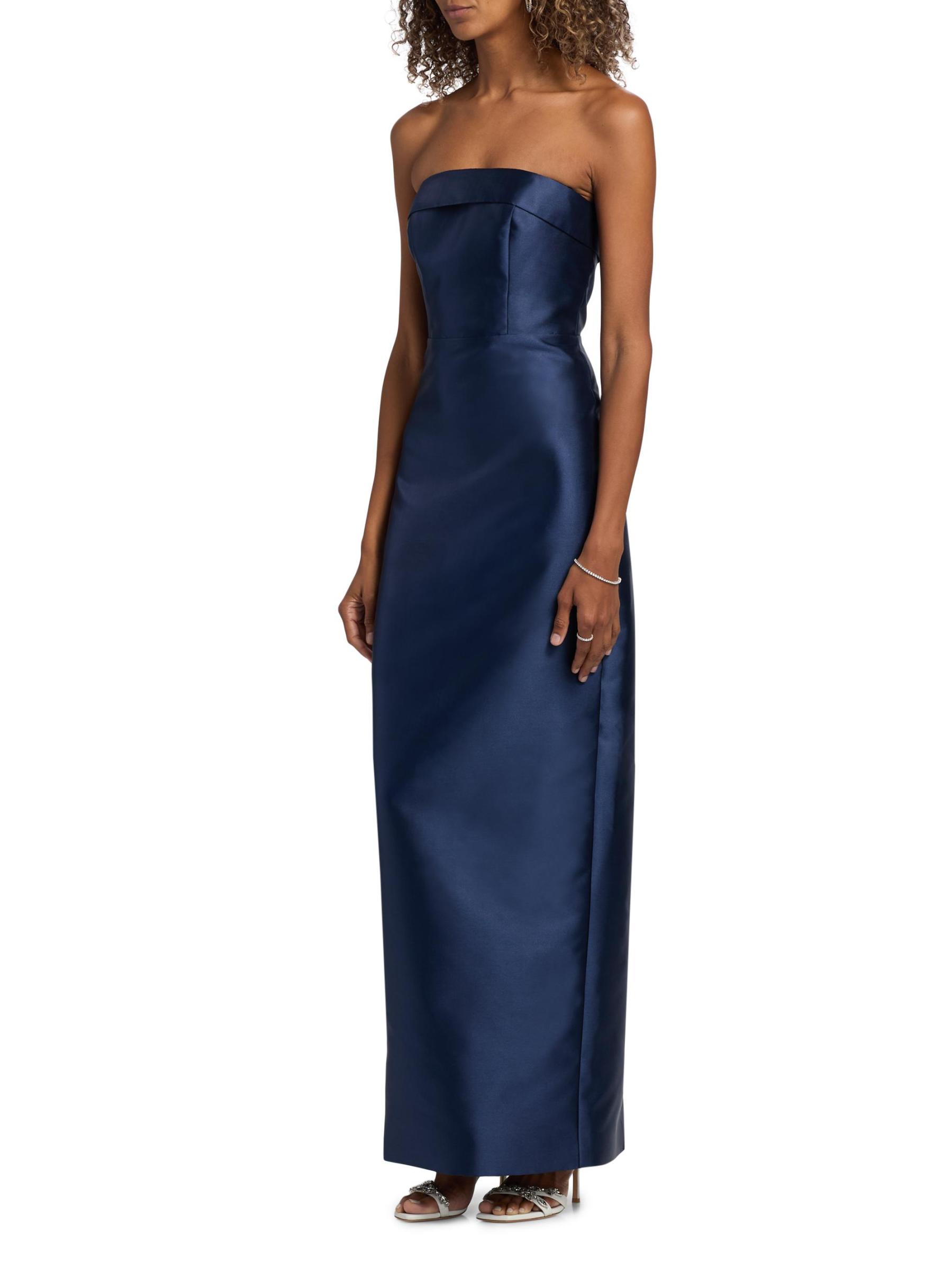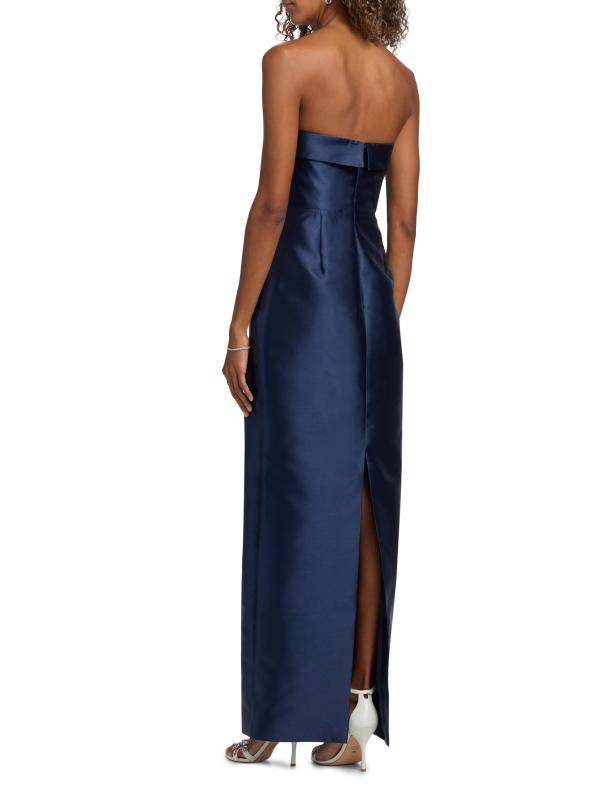 صُنع فستان Gaia من Theia من الميكادو في صورة عمودية بدون حمالات. تُبرز التفاصيل القابلة للطي خط العنق المستقيم لهذا الطراز الذي يصل إلى الأرض.رقبة مستقيمة بدون حمالات فتحة تهوية خلفية إغلاق بسحّاب خلفي مخفي 100% بوليستر تنظيف جاف مستوردة