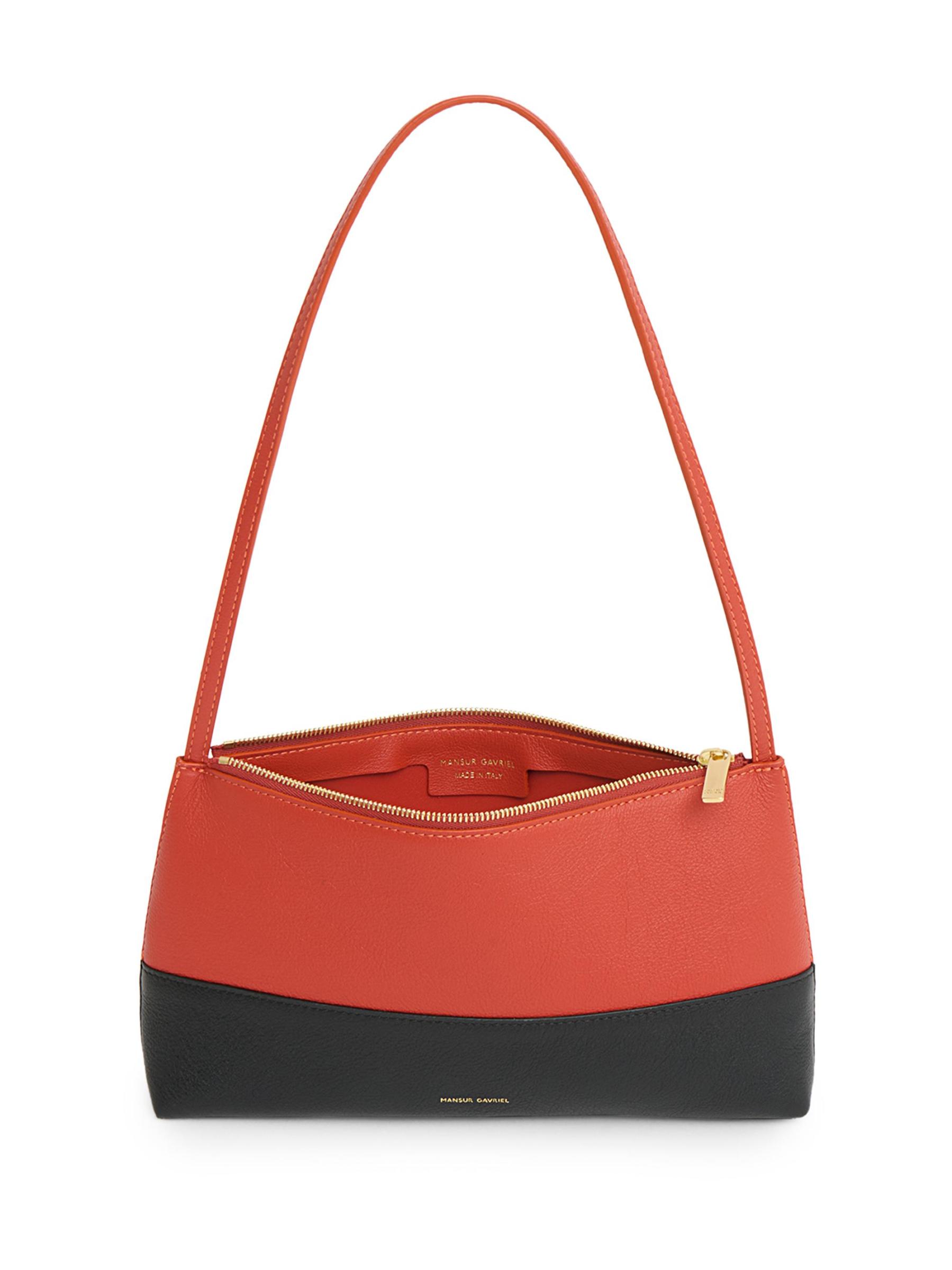 تتميز حقيبة الكتف Gaia هذه من Mansur Gavriel، المصنوعة من الجلد الإيطالي، بتصميم ثنائي اللون مع تفاصيل الشعار.