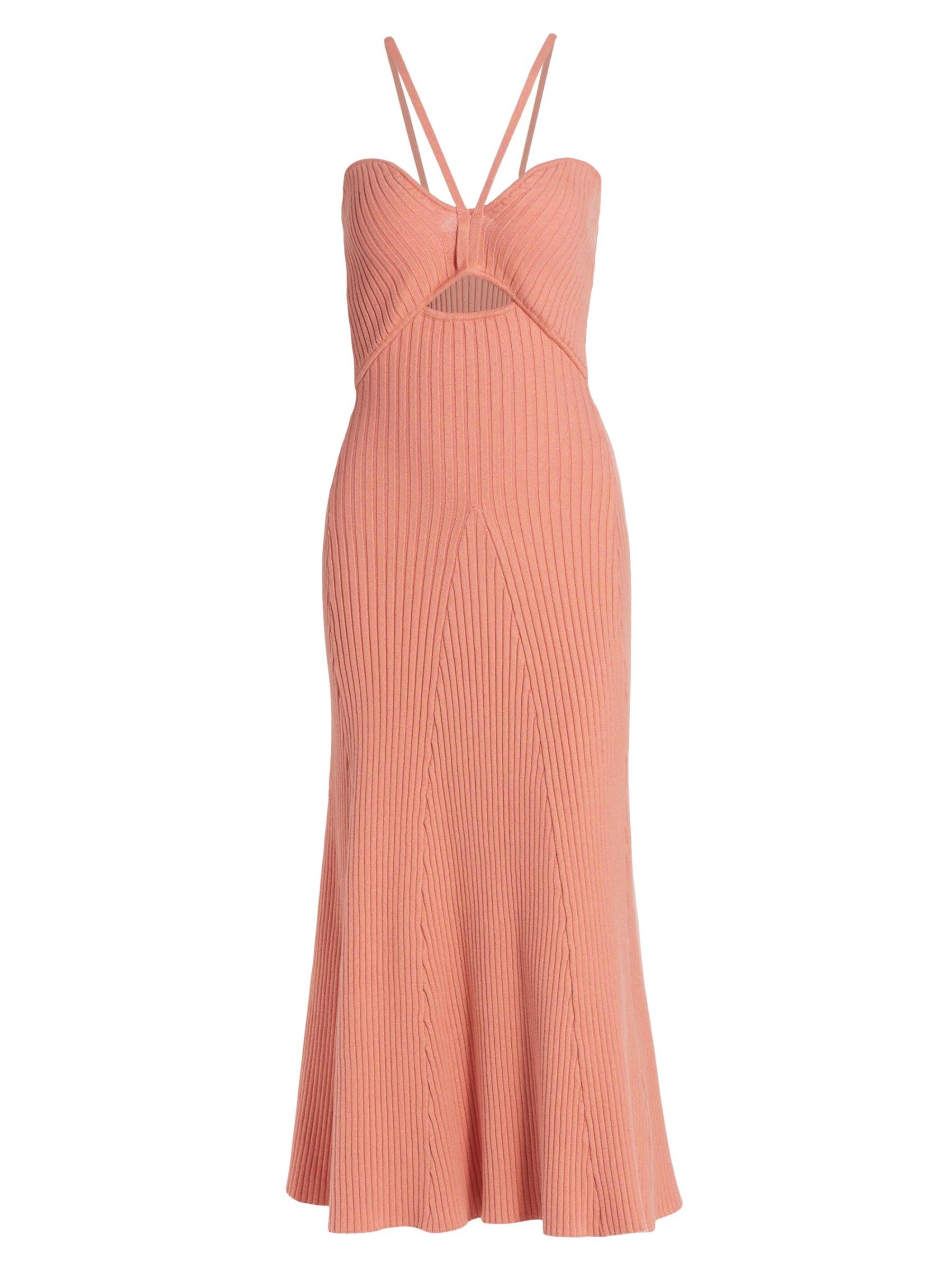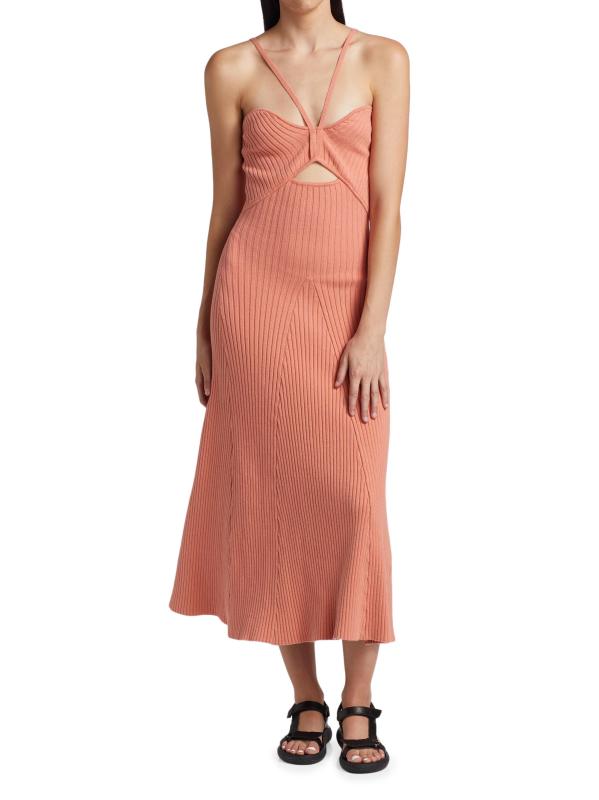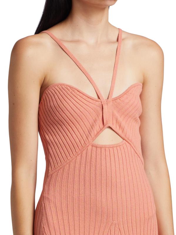 هذا الفستان متوسط الطول مصنوع من قماش مضلع.رقبة على شكل قلب أحزمة هالتر نمط بلوفر 98% قطن/ 2% إليستين يُغسل في الغسالة مستوردة