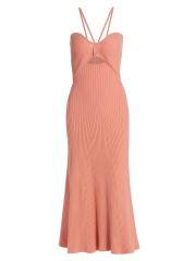 هذا الفستان متوسط الطول مصنوع من قماش مضلع.