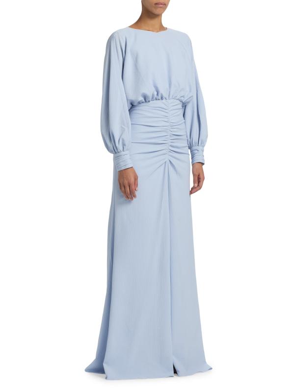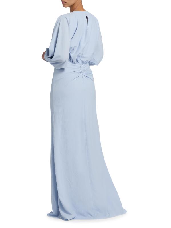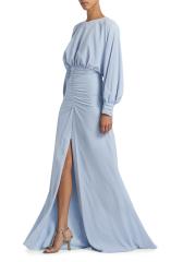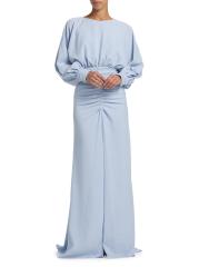 تم تصميم فستان Amsale بتصميم على شكل حرف A، مع تجمع عند الخصر.رقبة مستديرة أكمام طويلة خصر مجمّع إغلاق بسحّاب خلفي 98% بوليستر/ 2% سباندكس البطانة: 100% بوليستر تنظيف جاف مستورد من قماش ياباني
