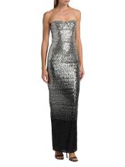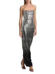 فستان ماكسي بدون حمالات مزيّن بالترتر من غيشا