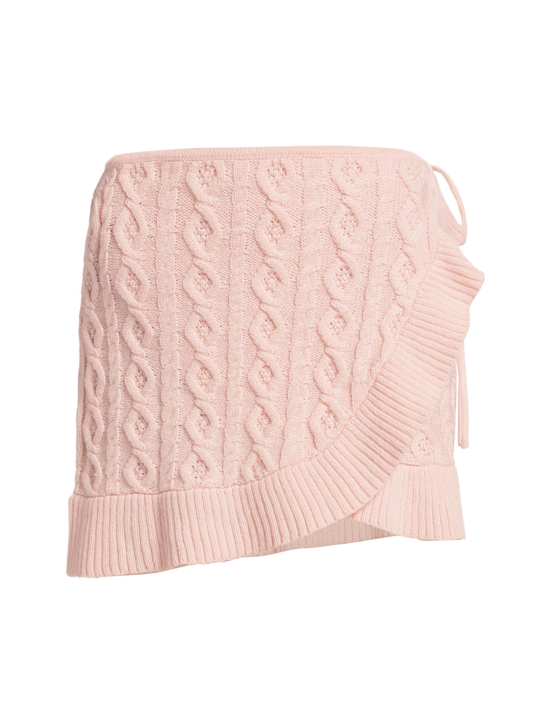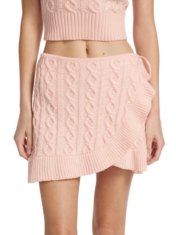 تنورة جيما القصيرة المحبوكة بالكابلات من GUIZIO مصنوعة من مزيج الصوف. يتميز هذا الطراز بتصميم ملفوف وتقليم مكشكش