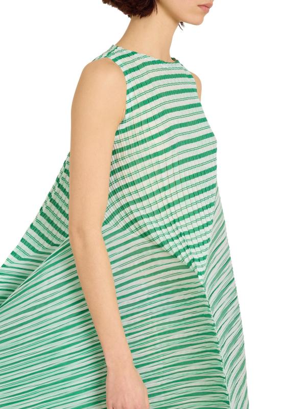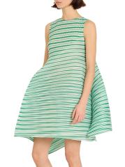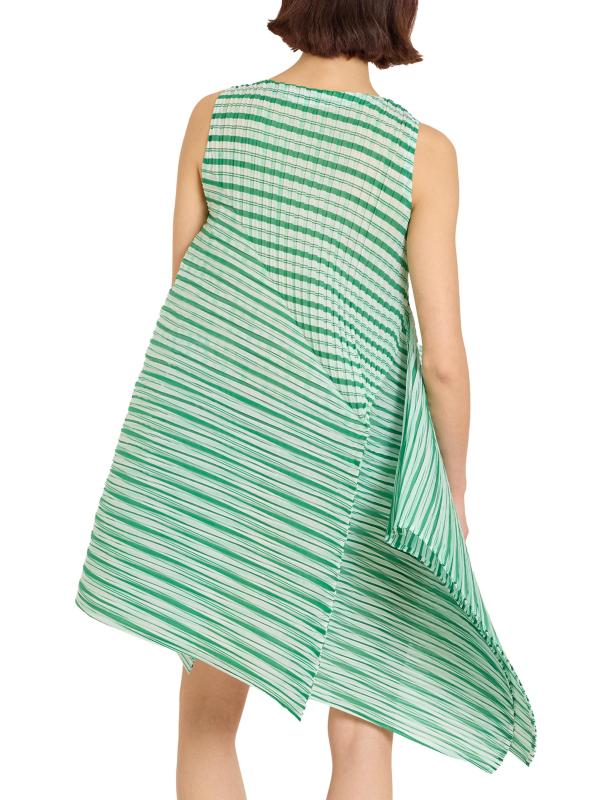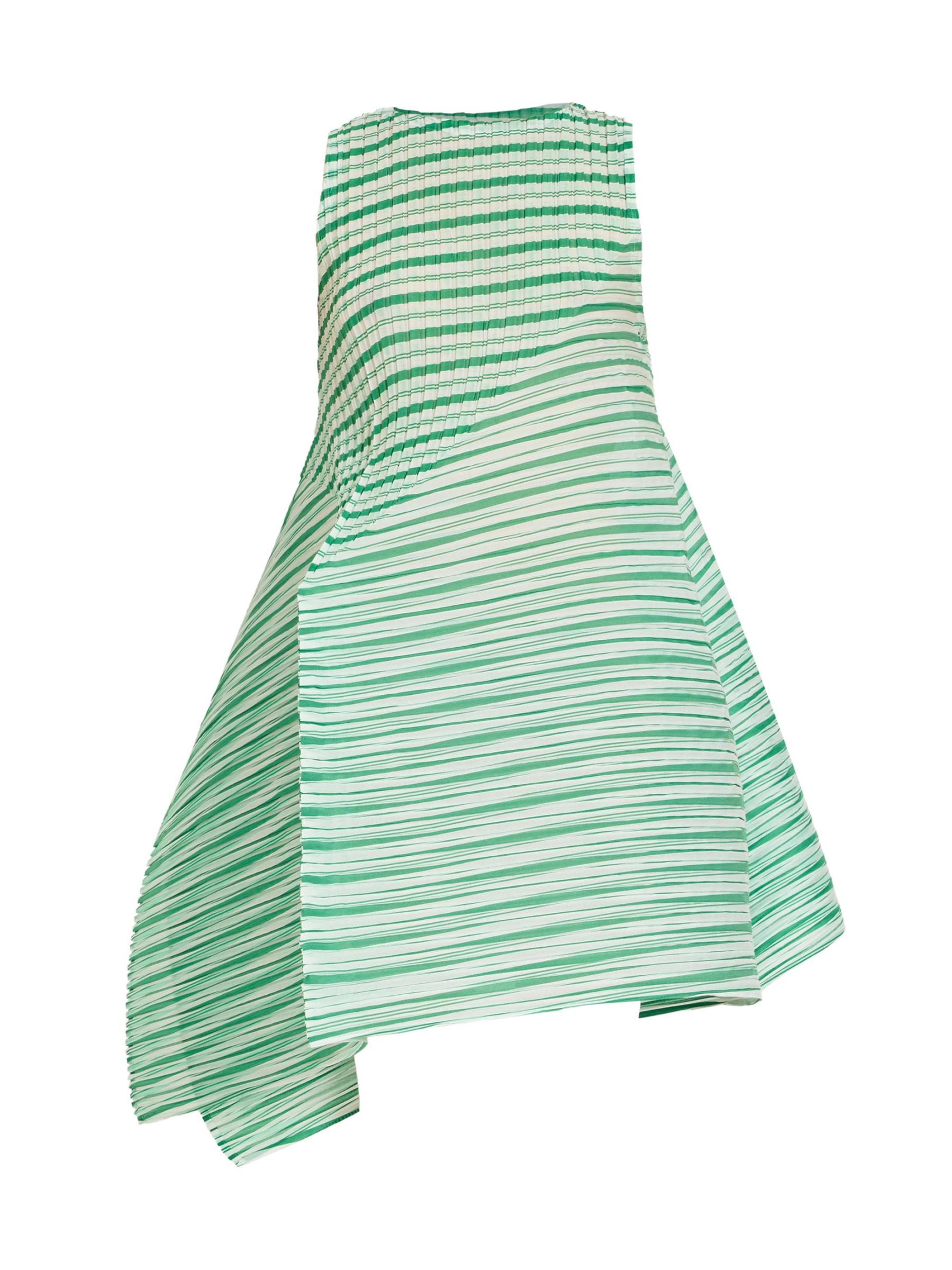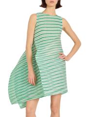 صُمم الفستان القصير Generic Stripes من إيسي مياكي بتصميم ميكانيكي مطوي، وتم نحته لخلق صورة ظلية فريدة من نوعها.
