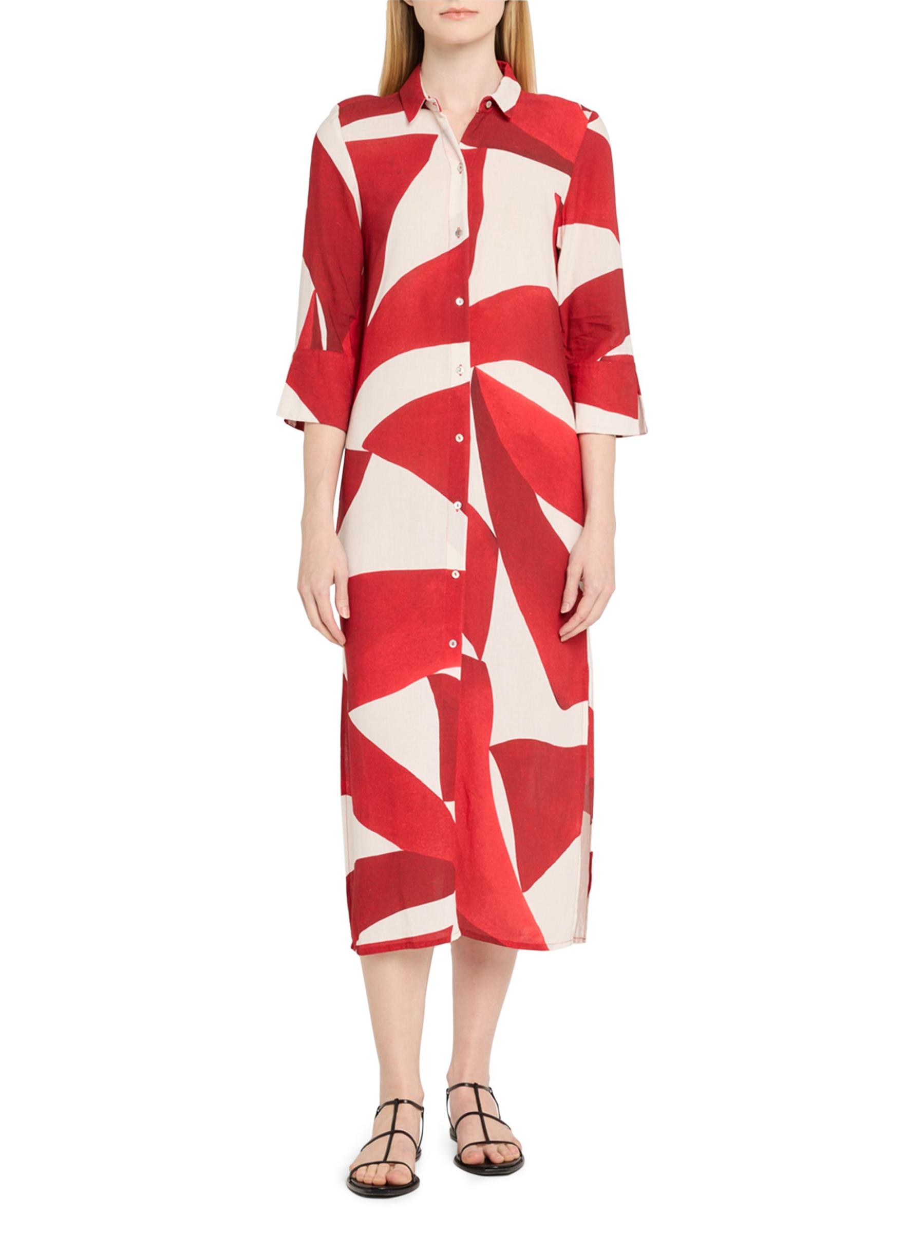 فستان بتصميم هندسي متوسط الطول بفتحة جانبية
