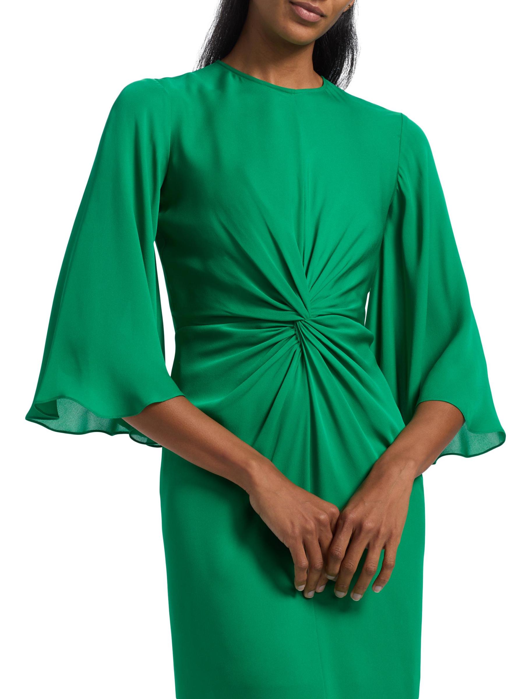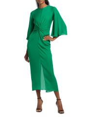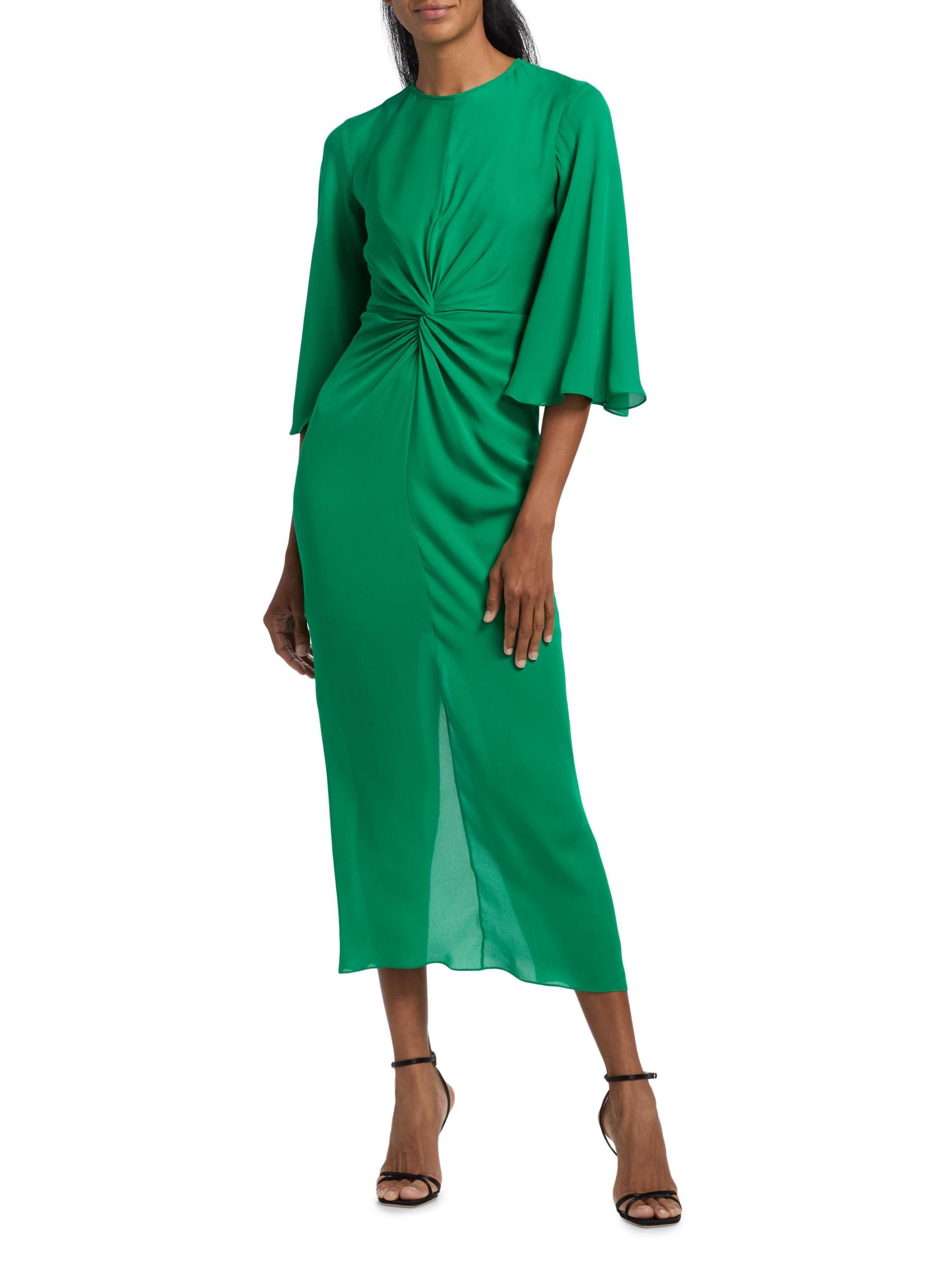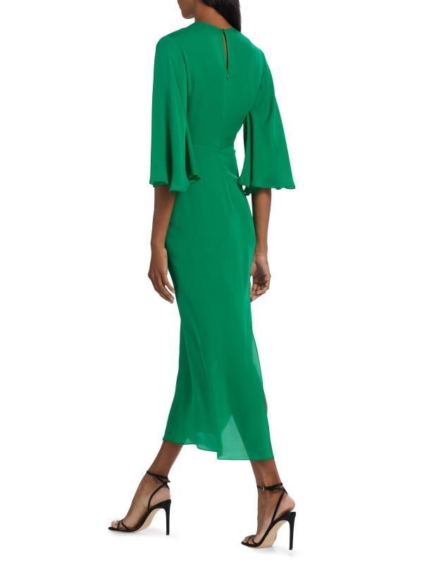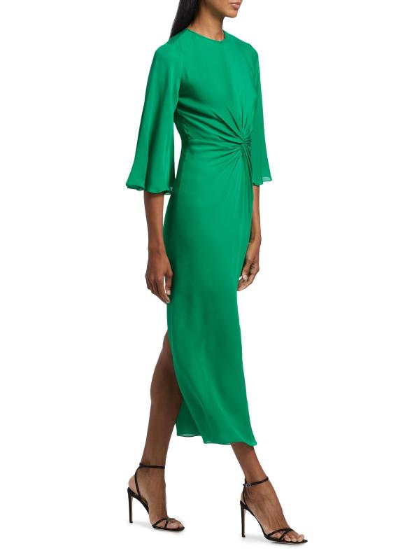 صُنع هذا الفستان المتوسط من Prabal Gurung من الجورجيت ذي التهوية الجيدة، ويتميز بأكمام رقيقة بطول ثلاثة أرباع، وتفاصيل أمامية ملتوية، وشق خلفي.