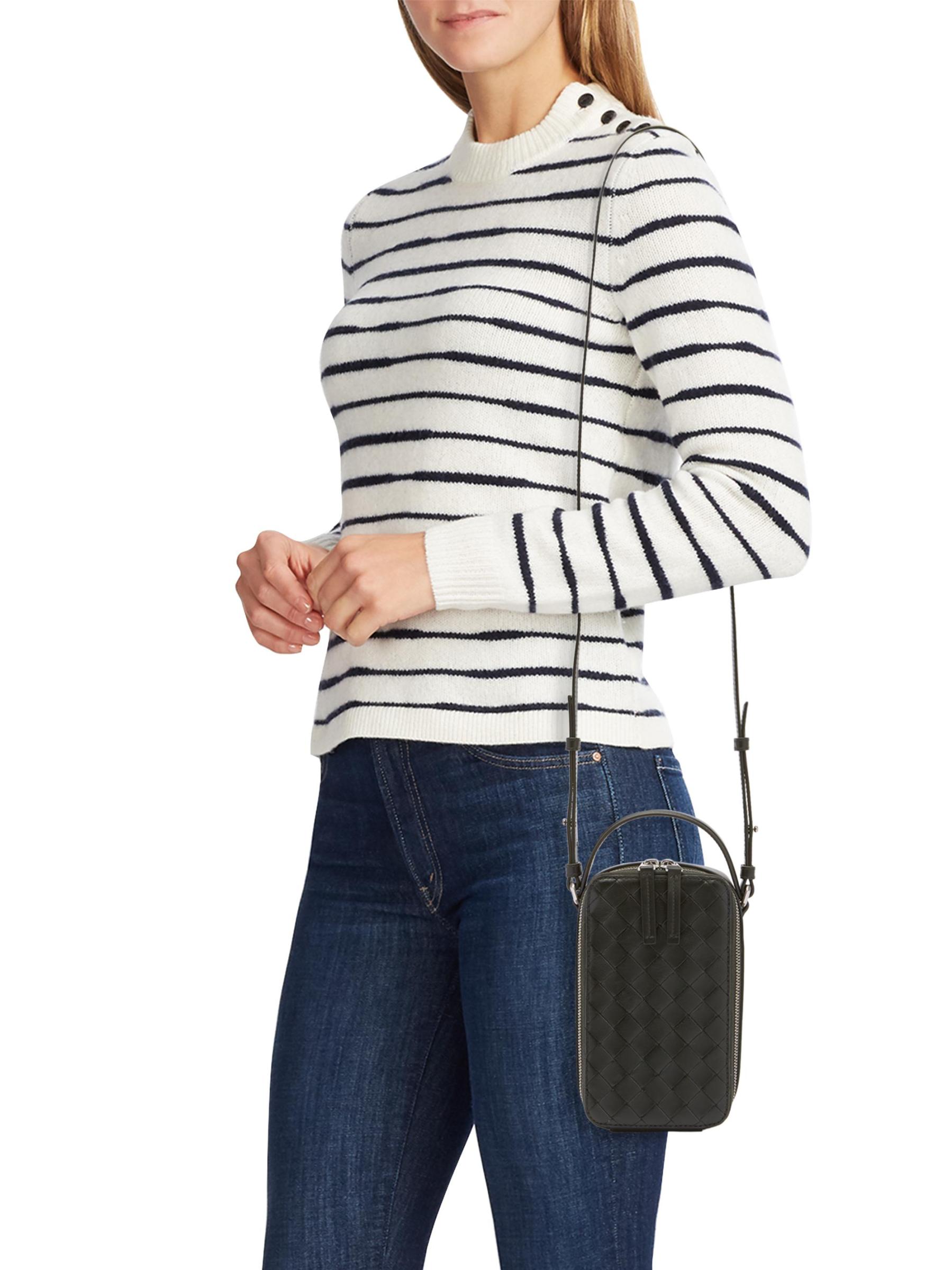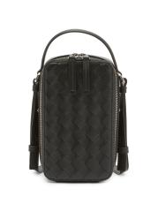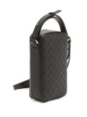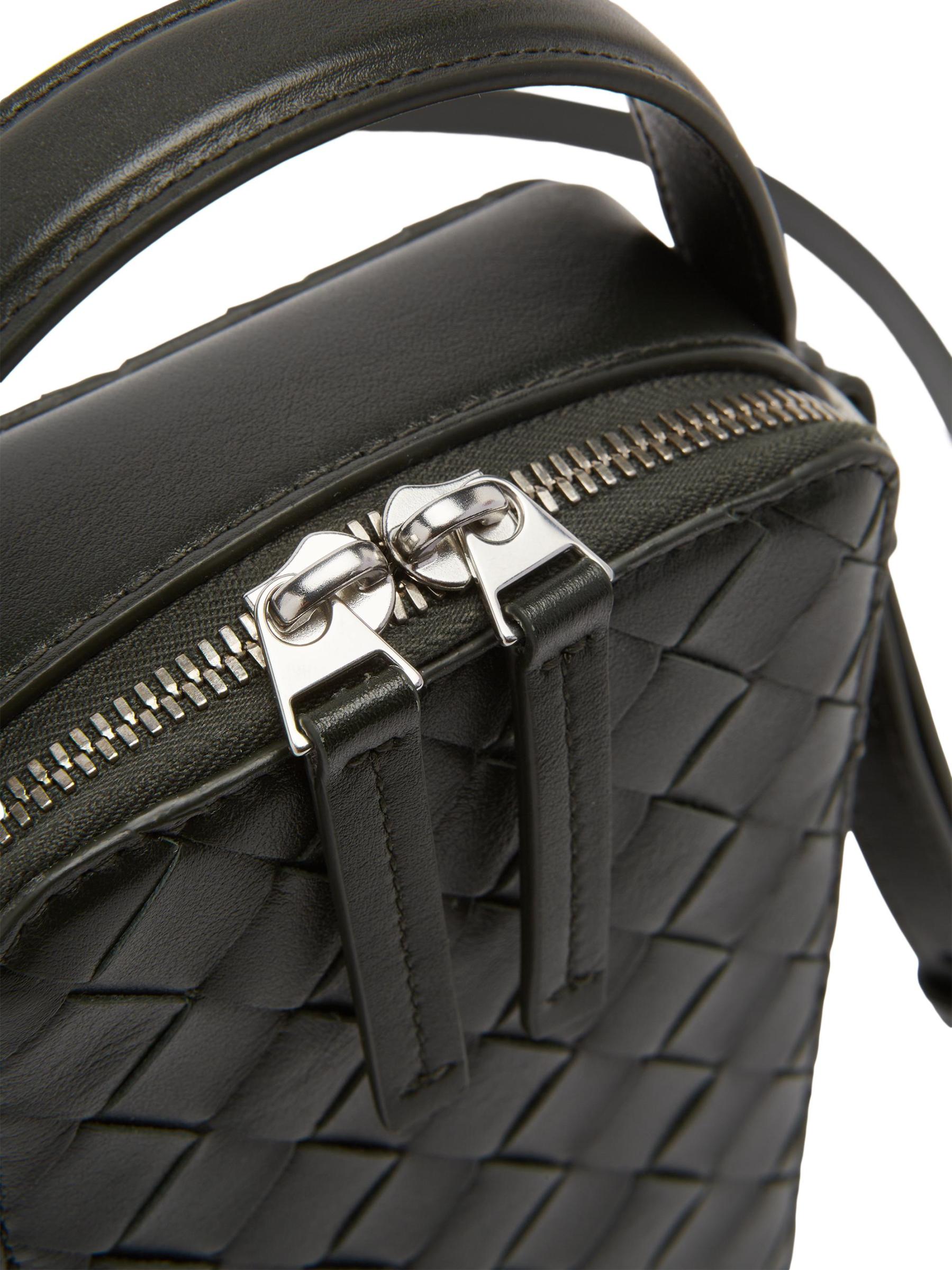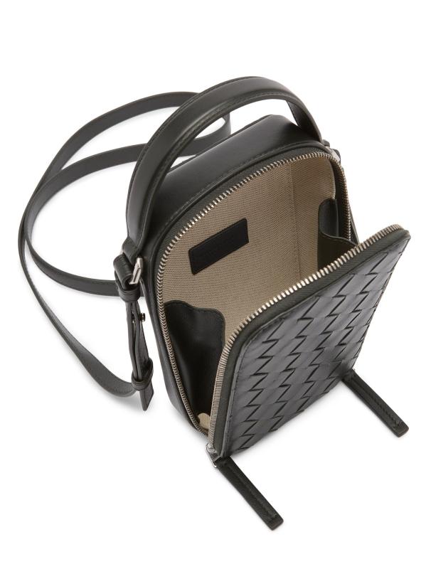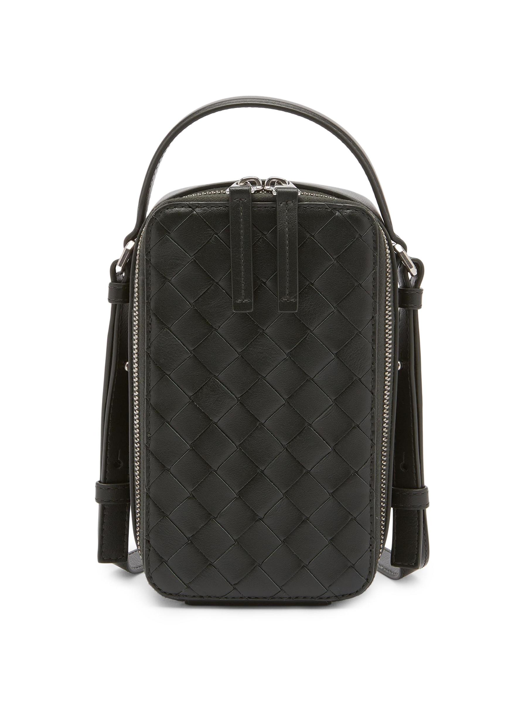 حقيبة هاتف Getaway من Bottega Veneta مصنوعة من الجلد المنسوج بنمط Intrecciato المميز الذي يتميز بمقبض وحزام يلتف حول الجسم.