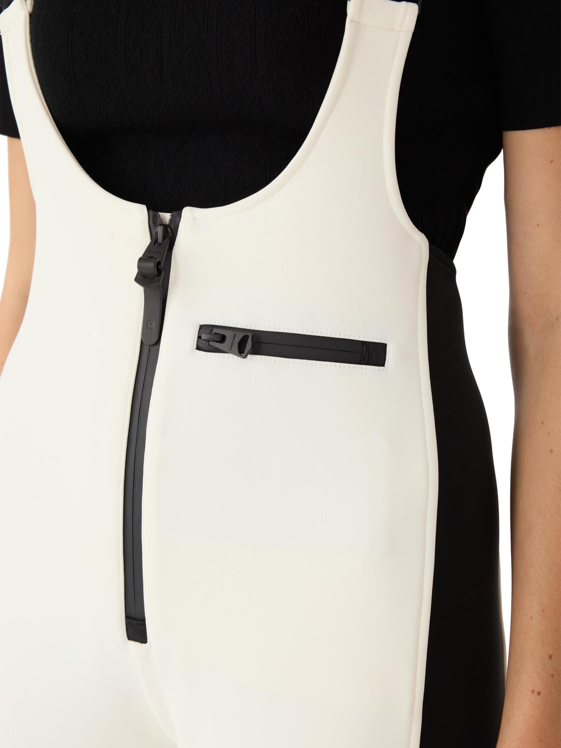 صُمم بنطال جيا للتزلج من Mackage من قماش التكنو المصنوع من قماش التكنو المربوط والمدعوم بالصوف والقابل للتمدد في اتجاهين لسهولة الحركة. يتميز هذا الطراز بمقاس قابل للتعديل، وجوارب ثلجية، وجيب بسحّاب، وحمالات قابلة للتعديل، مما يوفر مقاومة للماء والرياح والدفء دون زيادة الوزن.