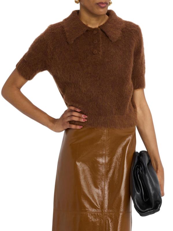 سترة Gio polo من A.L.C. منسوجة من الصوف المرن.ياقة بولو أكمام قصيرة إغلاق بثلاثة أزرار صوف/نايلون/بولي أميد تنظيف جاف مستوردة