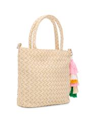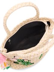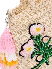 حقيبة Bari Lynn مصنوعة من الرافيا ومزينة بالزهور المطرزة المزينة بالخرز والشراشيب القابلة للإزالة.