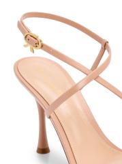 يأتي صندل غلوف سلينغ باك الأنيق هذا من جيانفيتو روسي، والمصنوع من جلد العجل بكعب عالي يبلغ 85 ملم، بتصميم مُزيّن بأربطة.إصبع مفتوح إغلاق بمشبك الجزء العلوي مصنوع من الجلد بطانة جلدية نعل جلدي صُنع في إيطاليا
