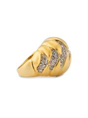 من مجموعة غولكوندا. يُظهر خاتم Wave Dome القابل للتعديل من Kenneth Jay Lane بلورات مرصعة على شريط ذهبي متموج.