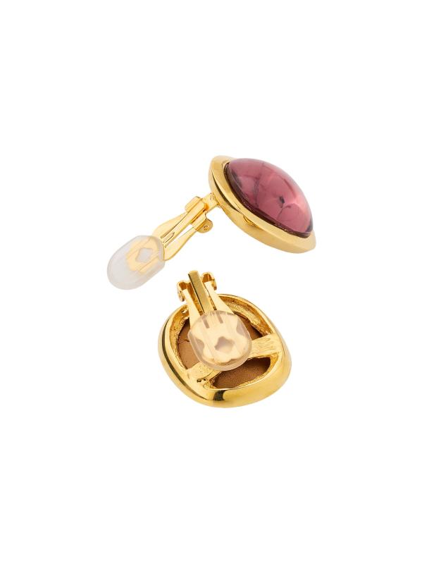 تتميّز أقراط Kenneth Jay Lane المزوَّدة بمشبك بإطار من حجر الجمشت الصناعي المُرصَّع بمعدن ذهبي لامع.