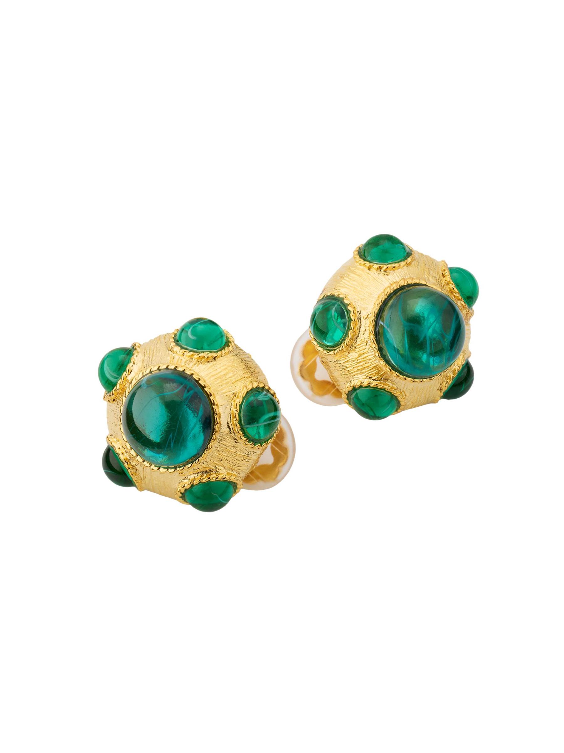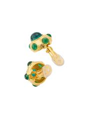 تتميز هذه الأقراط المزخرفة ذات اللون الذهبي من Kenneth Jay Lane بأحجار كابوشون المستوحاة من الزمرد.