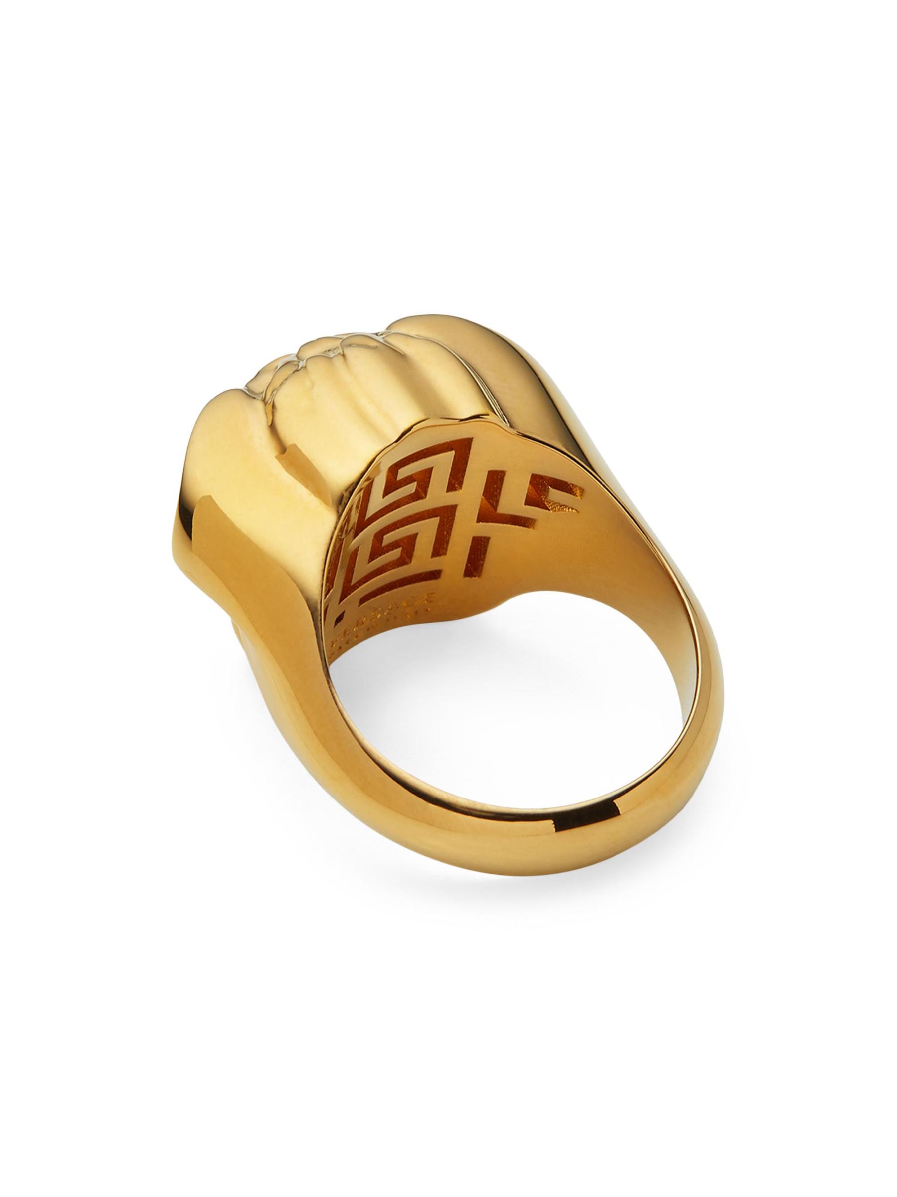 يتميز هذا الخاتم المميز ذو اللون الذهبي من فيرساتشي بتصميم ميدوسا النحتي.