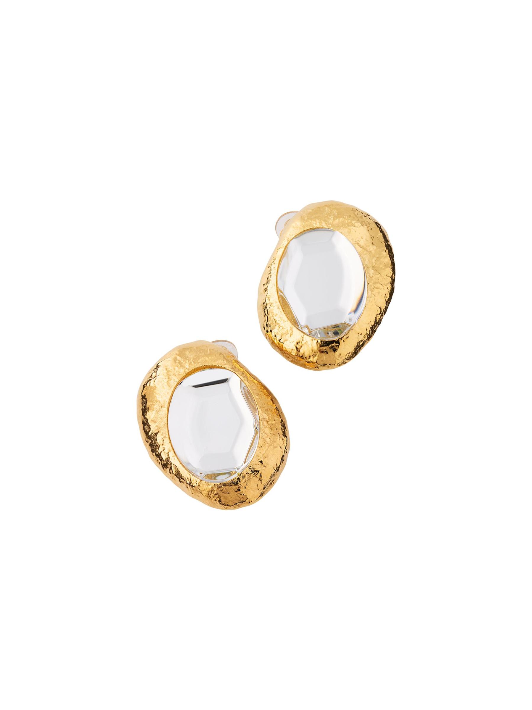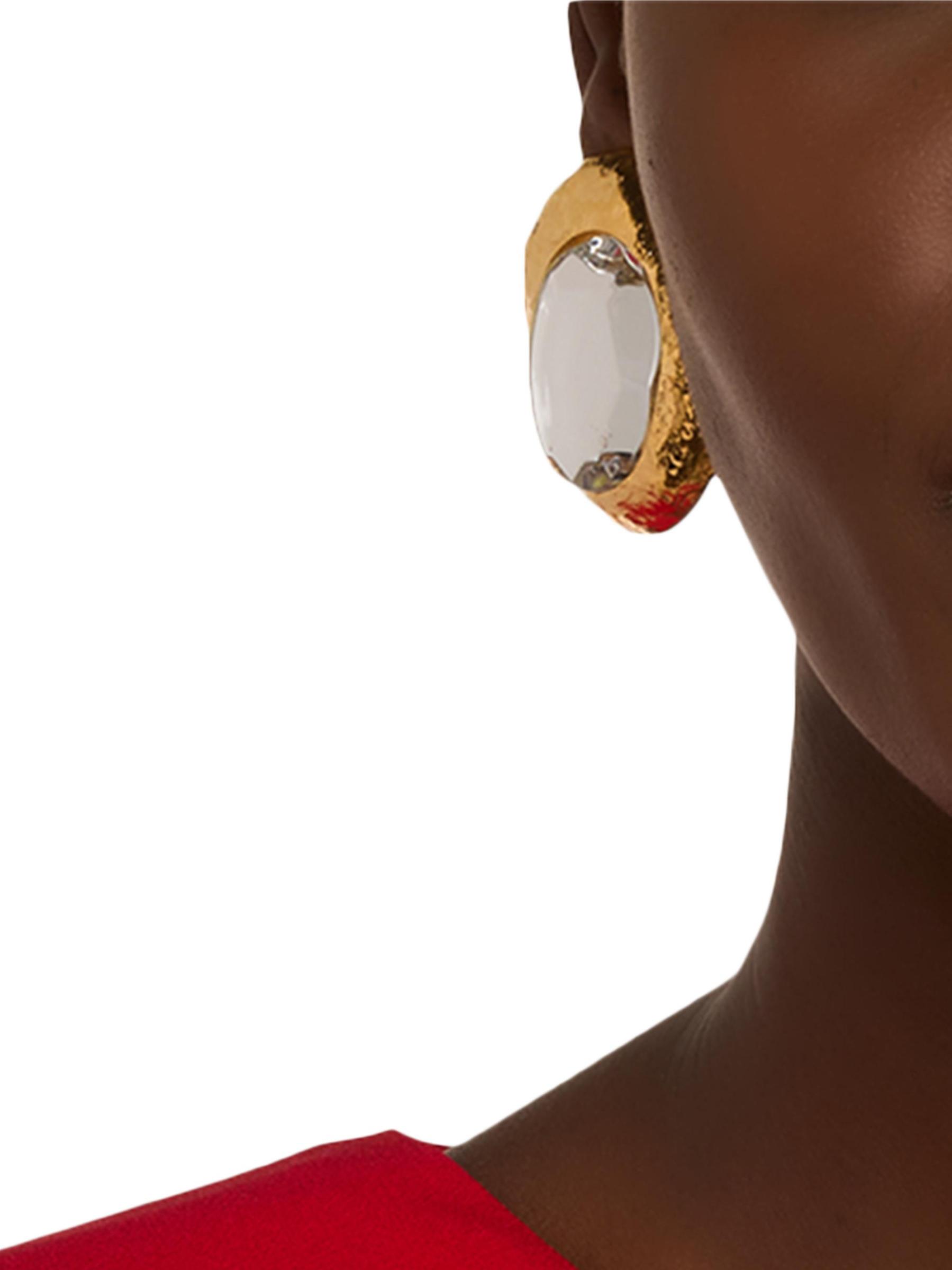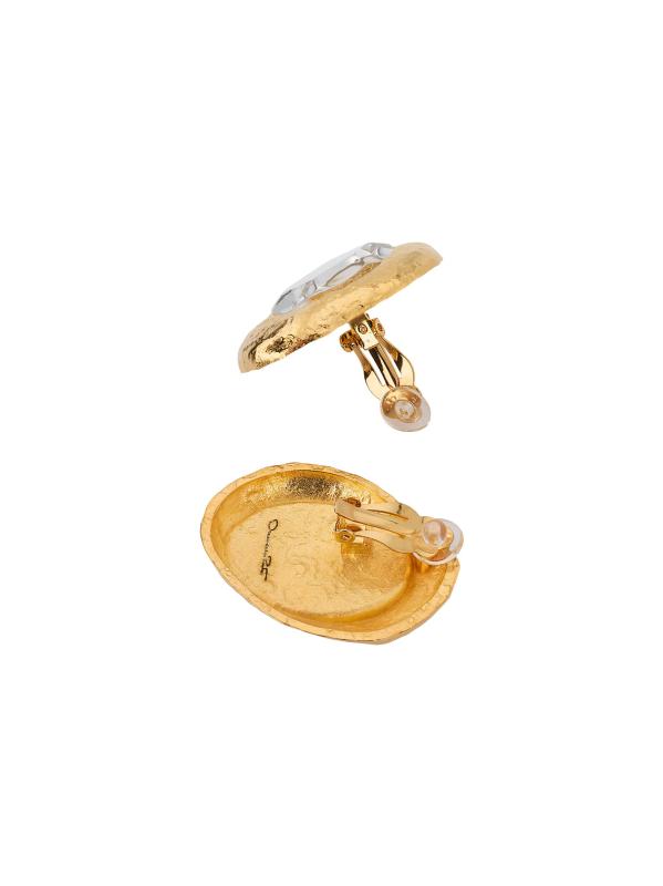 تتميّز أقراط Oscar de la Renta المزوّدة بمشبك باللون الذهبي من نسيج مطروق وتؤطر حجر الراين الزجاجي.