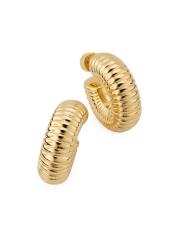 تتميّز أقراط Kenneth Jay Lane الحلقية المصنوعة من المعدن الذهبي بنسيج مخدد ولامع، بتصميم سميك.نحاس أرسل مرة أخرى مستوردة