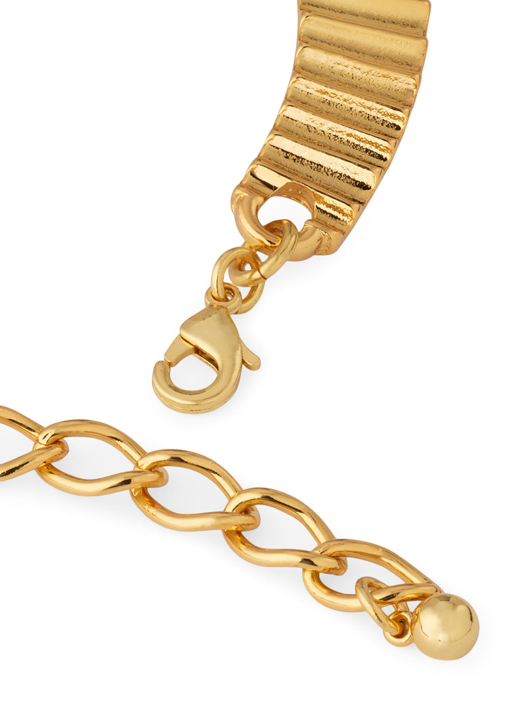 تتميّز قلادة Kenneth Jay Lane المضلّعة، المُصمّمة بثلاثة أجزاء مهيكلة مميّزة، بلمسة نهائية ذهبية اللون.نحاس مشبك لوبستر صُنع في الولايات المتحدة الأمريكية