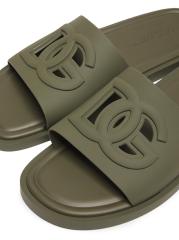 تم تفصيل شرائح Gomma من Dolce&Gabbana بنسخة مقطوعة من شعار المونوغرام الخاص بالمنزل.