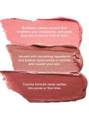 تساعد التركيبة الكريمية القابلة للبناء على تفتيح البشرة وإعطاء البشرة تدفقًا طبيعيًا من اللون. غني بالمكونات المغذية وهيالورونات الصوديوم، لا يضيف أحمر الخدود الكريمي هذا لمسة جميلة من اللون فحسب، بل يساعد أيضًا على ترطيب وتغذية البشرة، ولا يستقر أبدًا في المسام أو الخطوط الدقيقة.