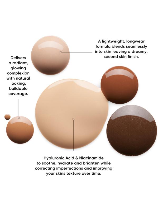 الماء، سيليكات الألمنيوم المغنيسيوم، بوتيلين جليكول، صمغ الزانثان، لوريث 7، حمض الفيتيك (و) الماء، كلوريد الصوديوم، الكافيين، سوربات البوتاسيوم، حمض الهيالورونيك [1٪] (و) الماء [99٪]، فينوكسي إيثانول، الجلسرين، 1.3 بروبانديول، أكوا، بالميتويل تريببتيد -1، بالميتويل تيترابيبتيد -7، لوريل جلوكوسيد، صمغ الزانثان، كابريل جليكول، نياسيناميد، سكروز، دايميثيكون، ليسيثين، ميكا/ميثيكون، أكسيد الحديد/الميثيكون، أكسيد الحديد/الميثيكون، أكسيد الحديد/الميثيكون، ثاني أكسيد التيتانيوم/الميثيكون، لوريل PEG-9 بوليديميثيلسيلوكسي إيثيل دايميثيكون، PEG-10 دايميثيكون، دايميثيكون ( و) ثنائي ميثيكون/PEG-10/15 كروس بوليمر، PPG-12/SMDI كوبوليمر، توكوفيرول أسيتات، فينيل تريميثيكون (و) هيكتوريت ديسيتارديمونيوم (و) ثلاثي إيثيل سيترات، دايميثيكون (و) بولي سيليكون 11، ثلاثي ميثيل سيلوكسيسيليكات (و) إيزودوديكان، السيليكا