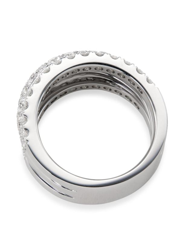 من مجموعة جريس. يتلألأ خاتم Hearts On Fire المصنوع من الذهب الأبيض عيار 18 قيراطًا والمصمم بوجه مقبب بشكل جميل بثلاثة صفوف من الماس المرصوف.الماس، 1.68 طن درجة لون الماس: G-H درجة وضوح الماس: VS-SI ذهب أبيض عيار 18 قيراط مستوردة