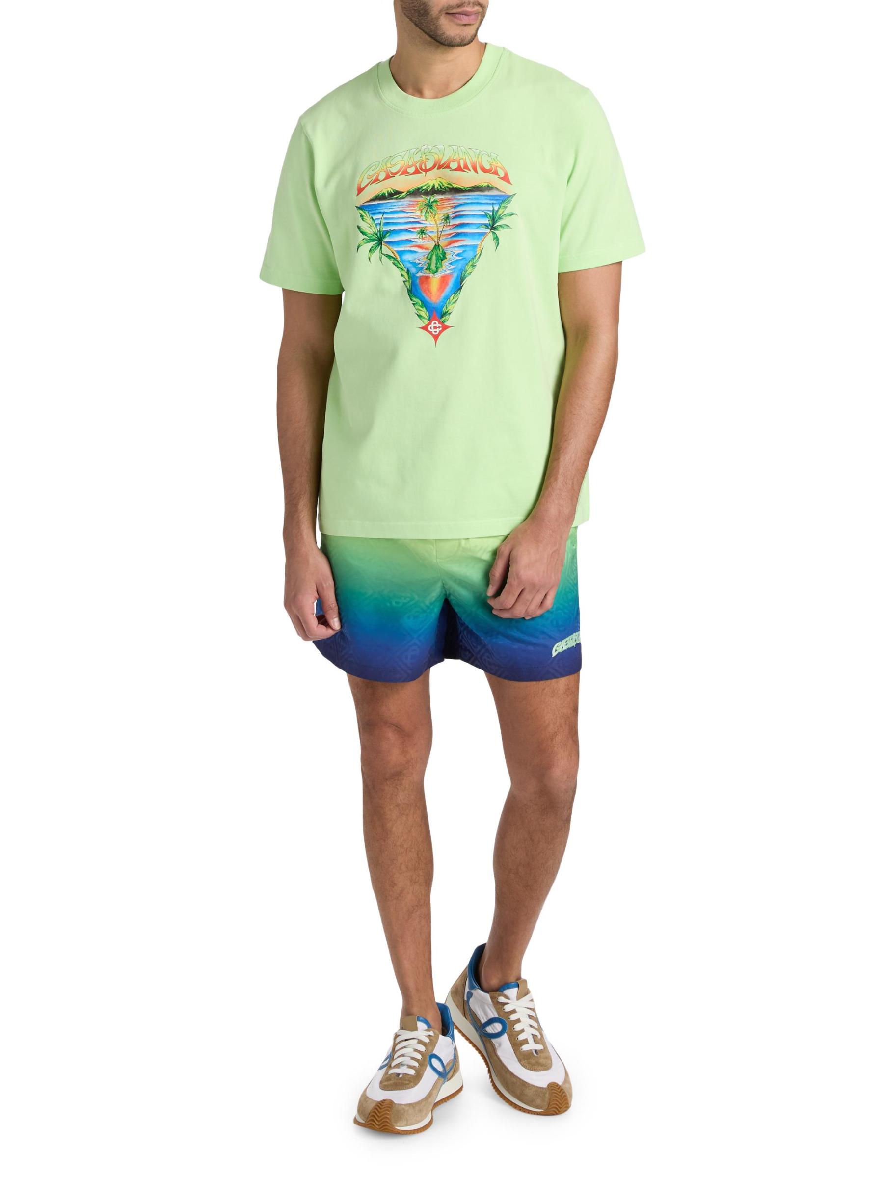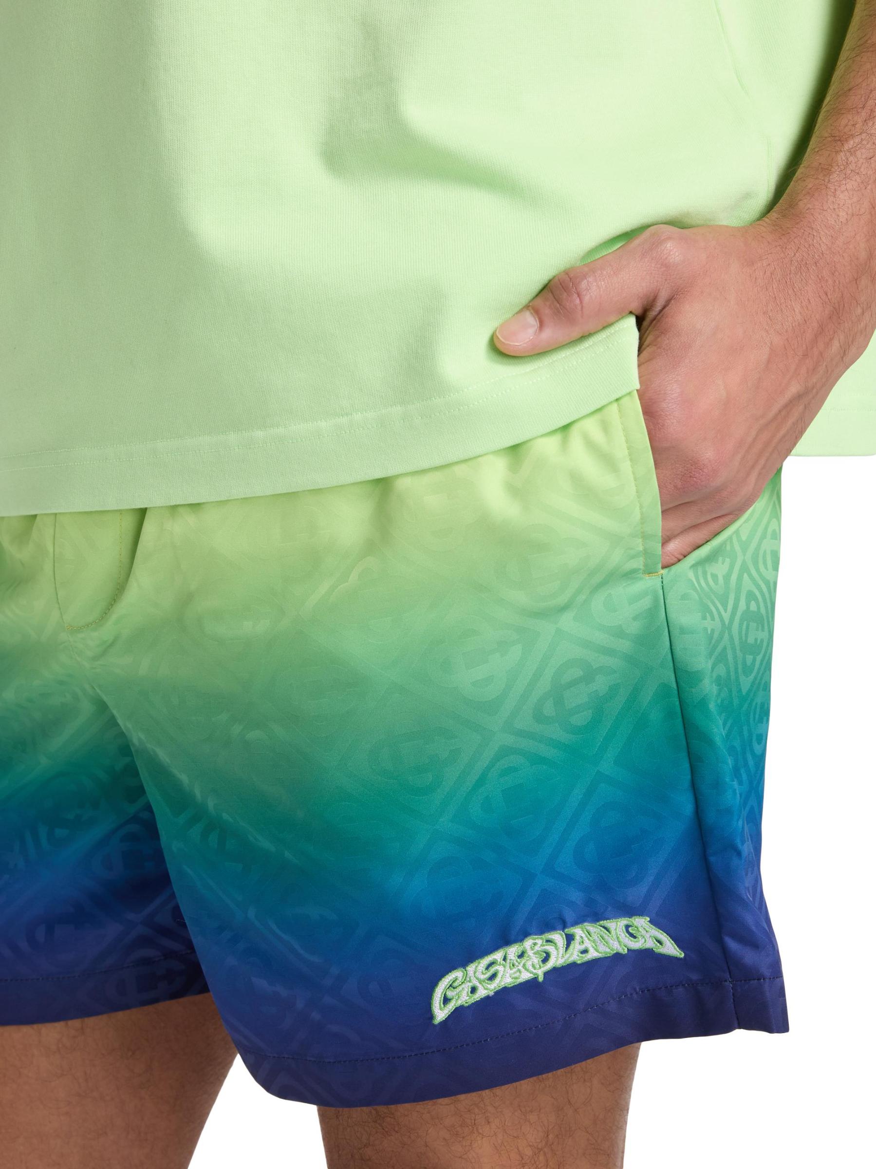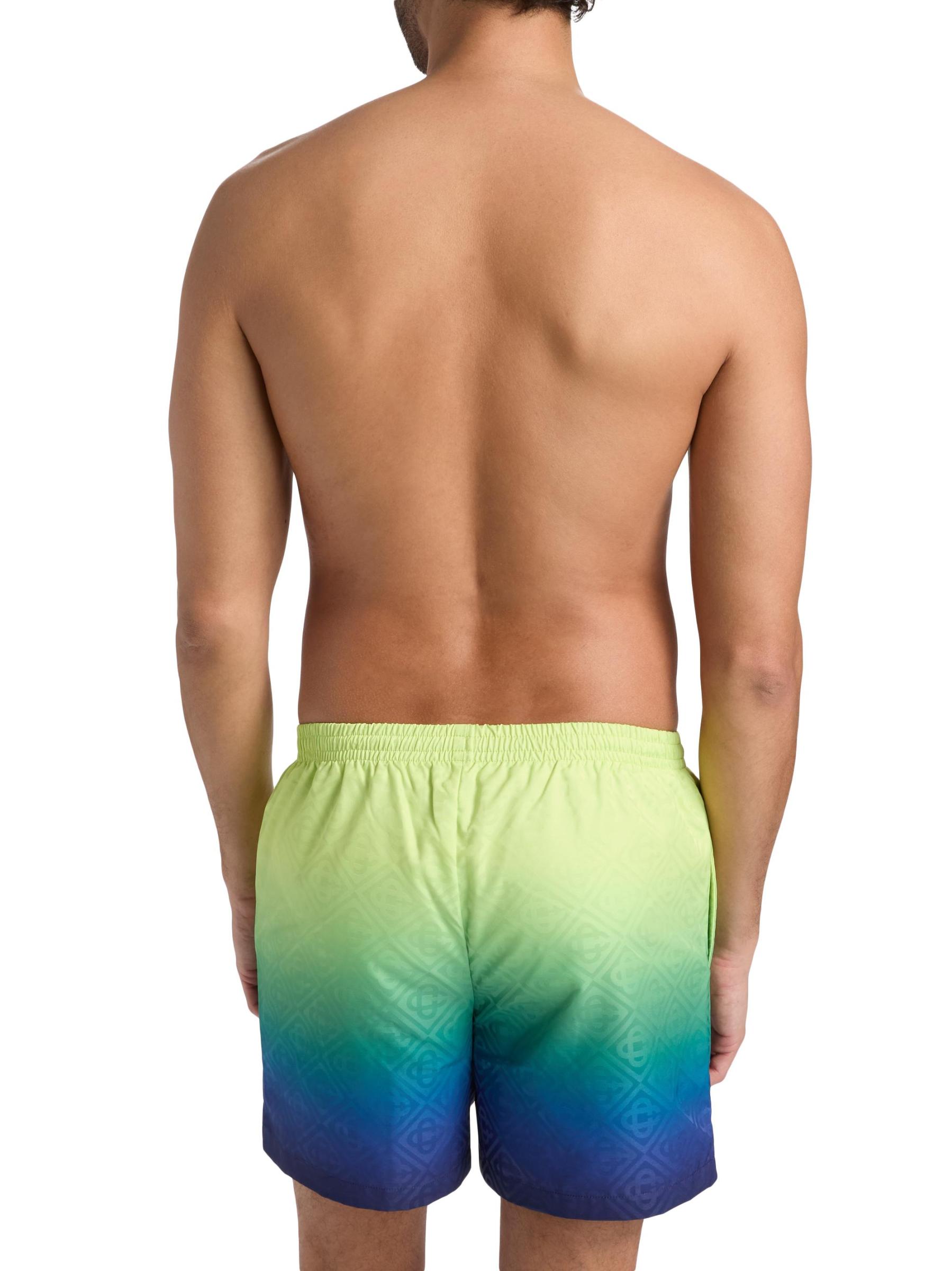 يتميز شورت السباحة Casabanca هذا بنقشة مونوغرام متدرجة نابضة بالحياة وشعار مطرّز على الحافة. حزام خصر مطاطي وذبابة وهمية يكملان المظهر.