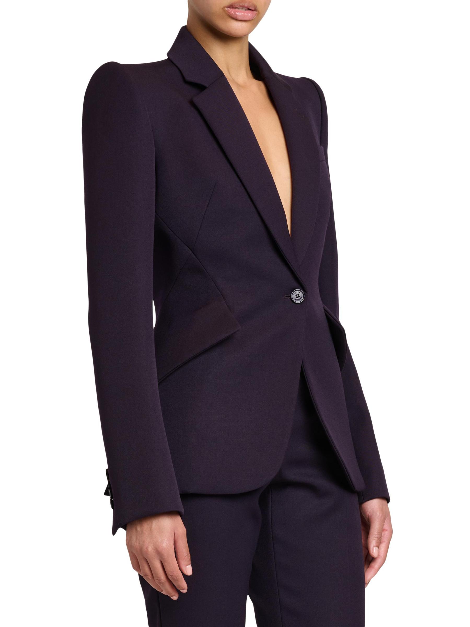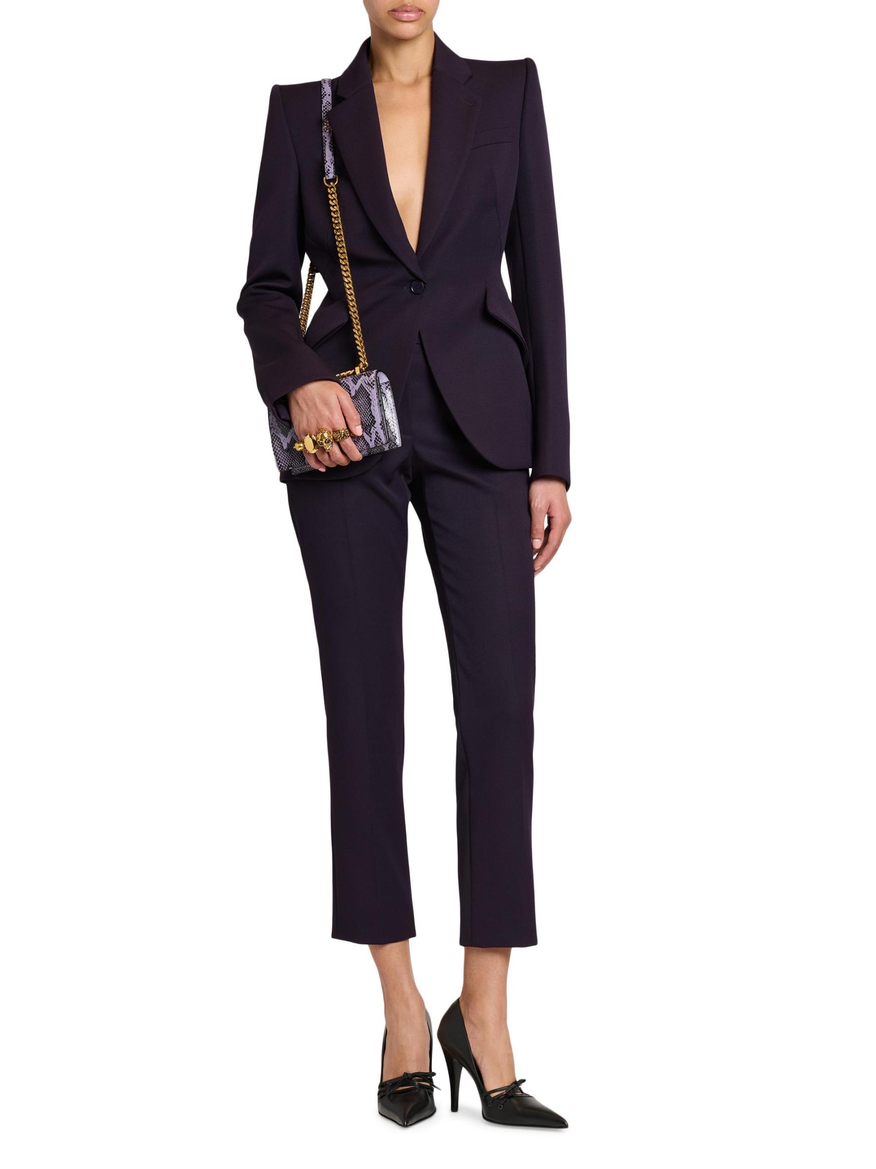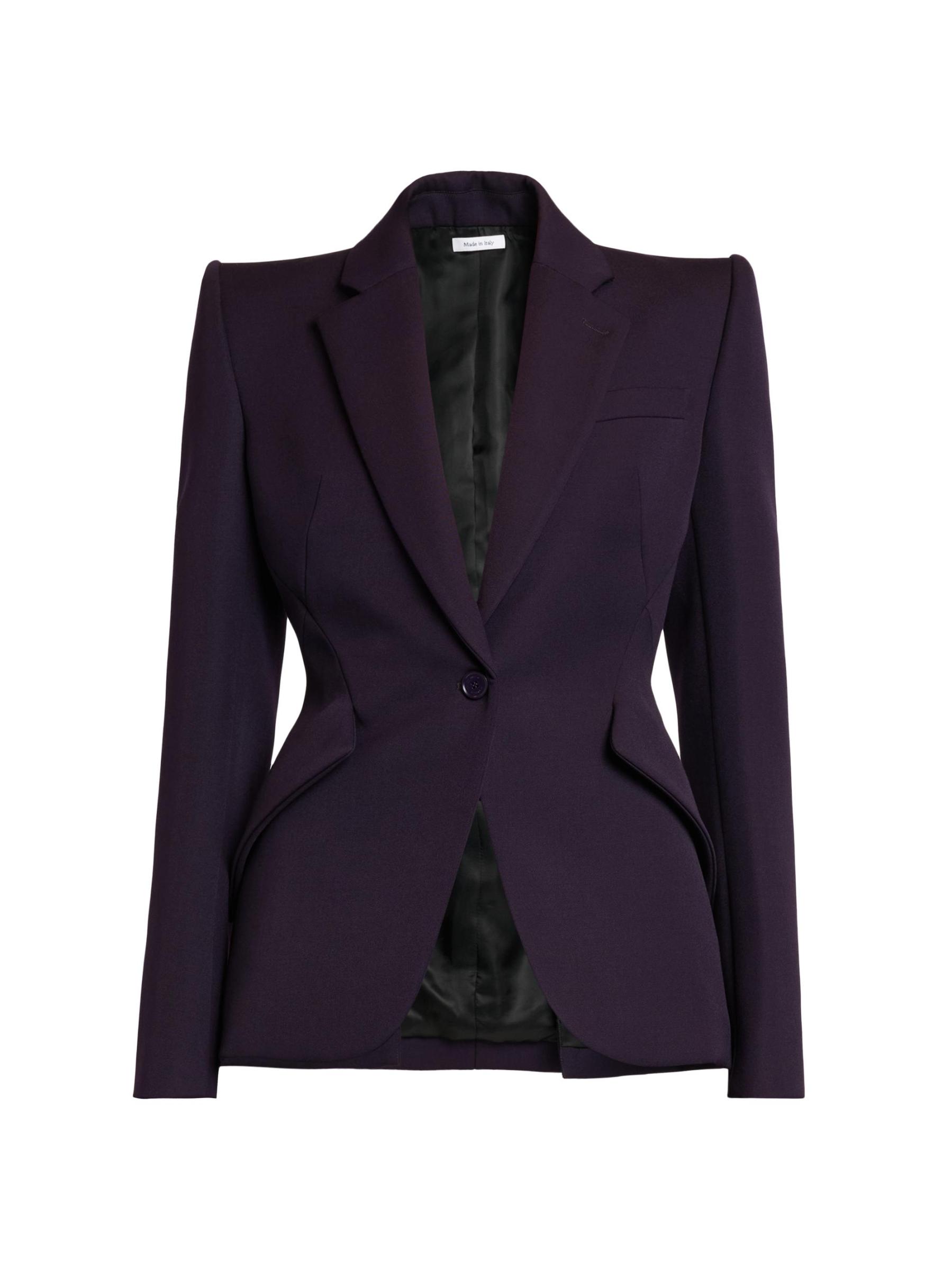 تتميّز سترة McQueen هذه المصنوعة من الصوف المصنوع من حبيبات البودرة بثنيات مشقوقة وأكمام طويلة وأساور بأزرار وأكتاف مهيكلة.
