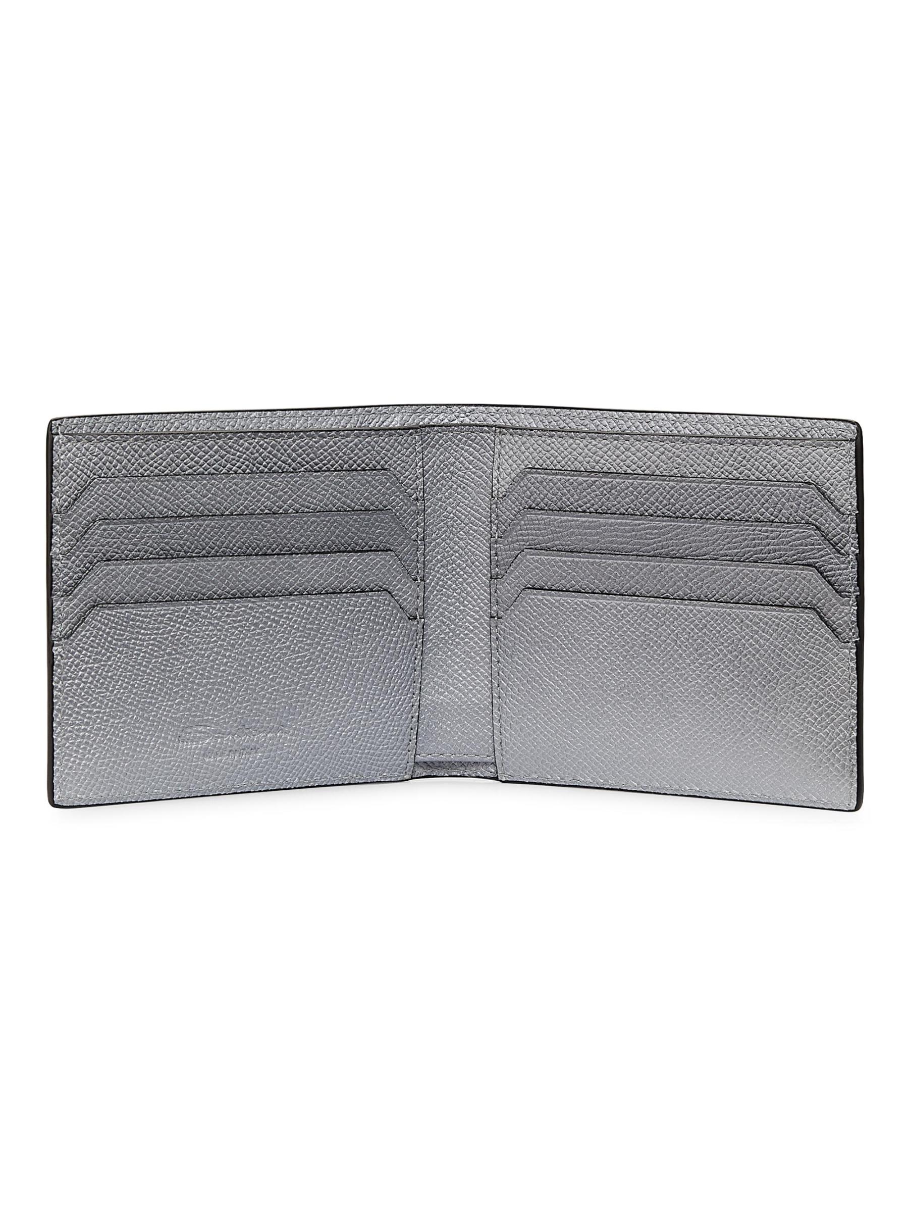 تتميز هذه المحفظة المصنوعة من الجلد من Santoni بتصميم صغير وواسع مع جيب واحد للفواتير وثماني فتحات للبطاقات وجيبين مخفيين.