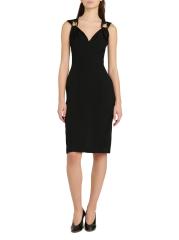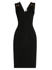يتميز فستان Bottega Veneta المصنوع في إيطاليا بغلاف محكم بتصميم محبب وخواتم ذهبية اللون عند الكتفين وتفاصيل مطرزة.