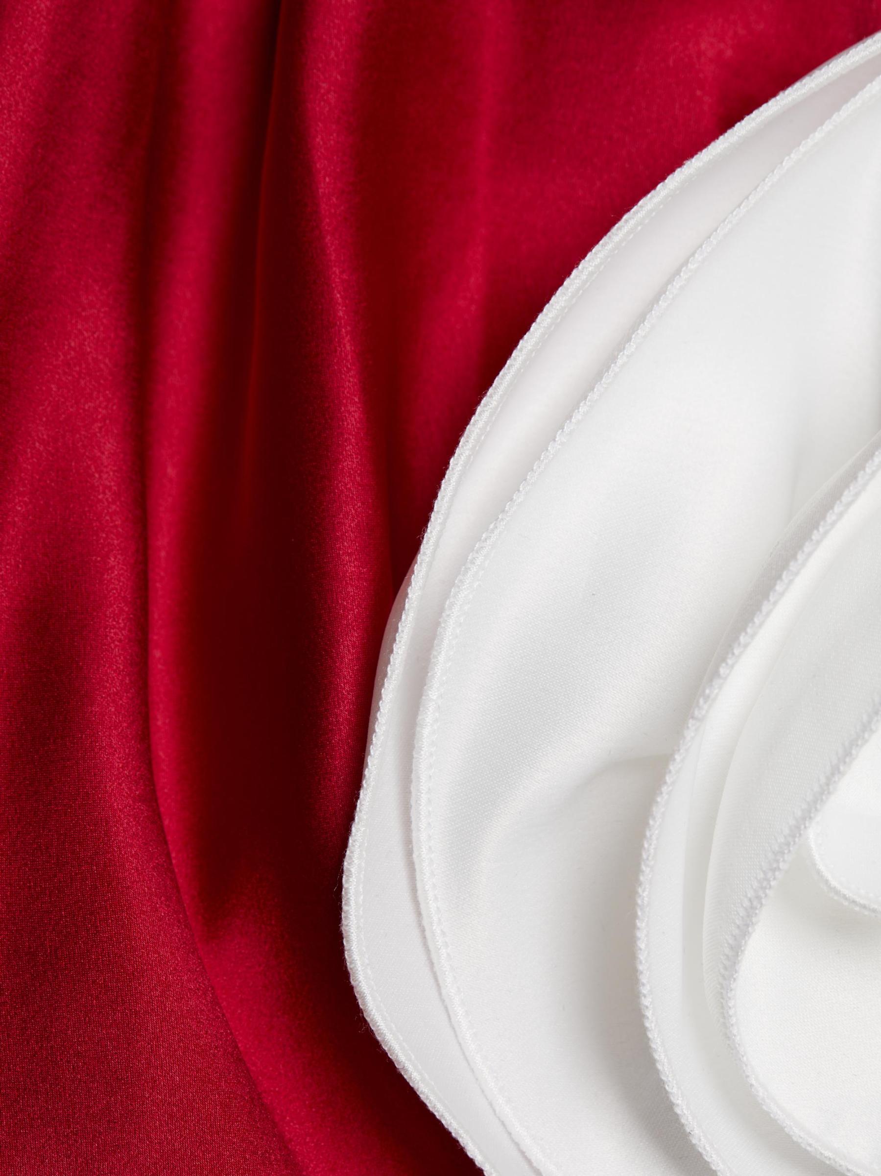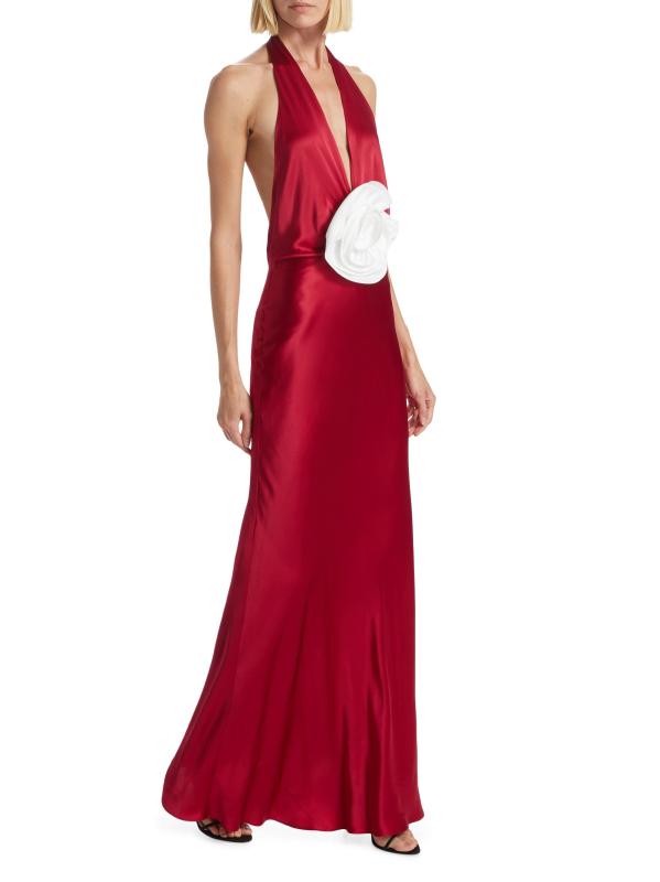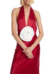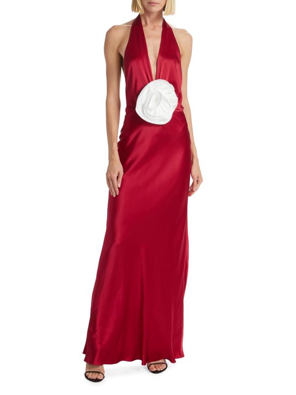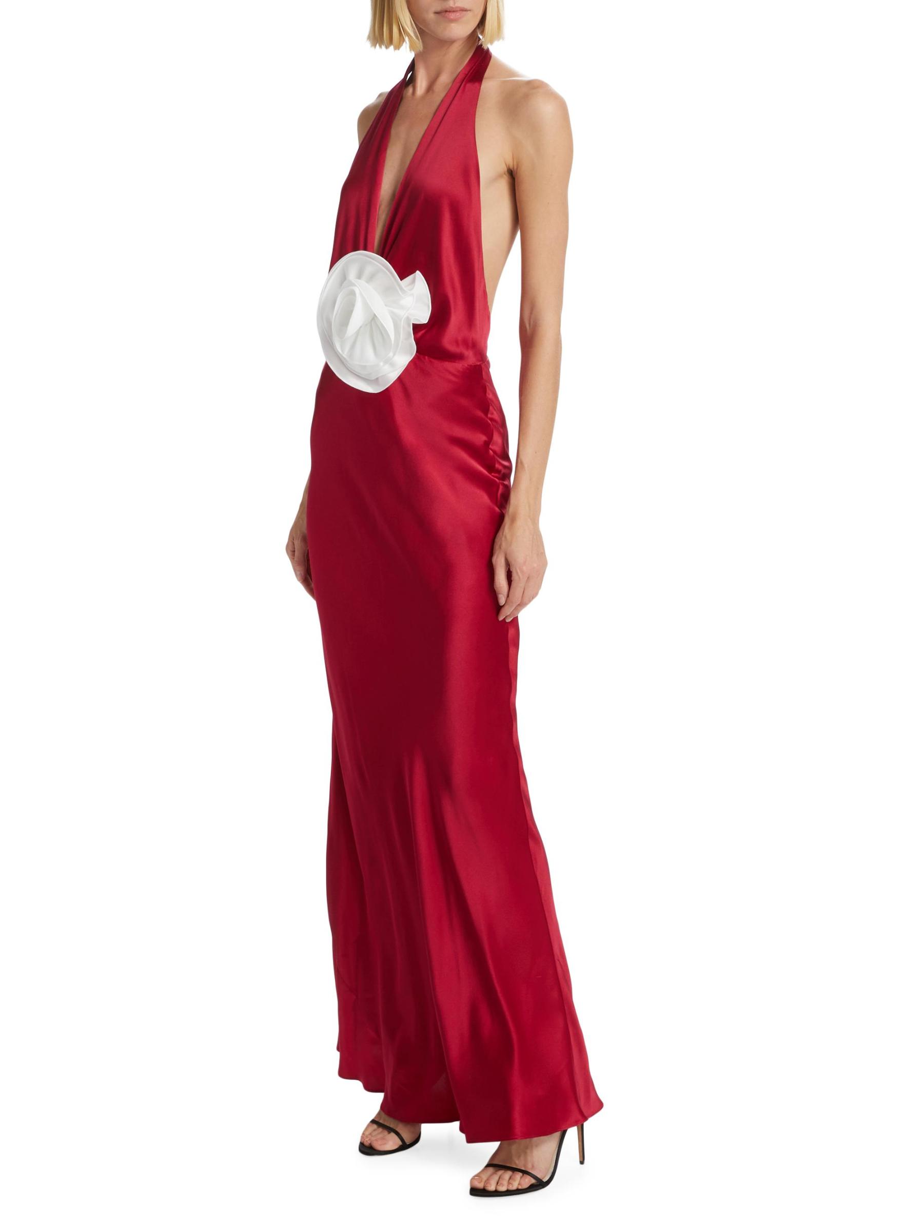 يُبرز فستان Grayson ذو الرسن من The Bar، المصنوع من الحرير الناعم، وردة متباينة مثيرة عند الخصر الضيق. يتميز هذا التصميم الملكي بظهر مفتوح.
