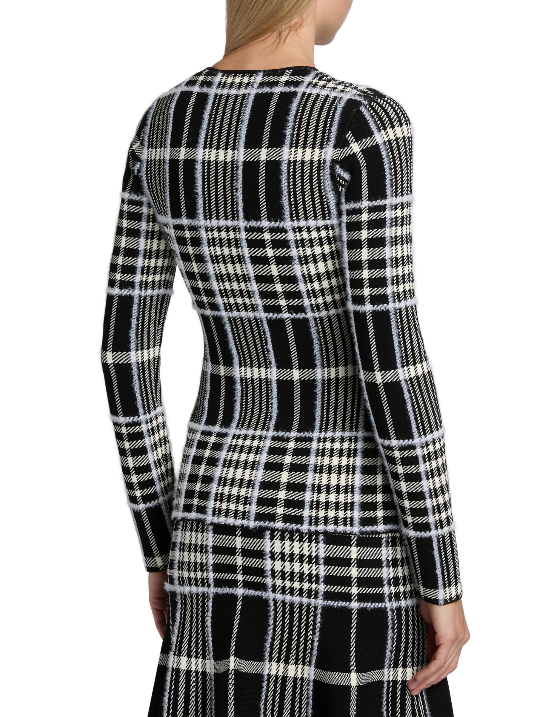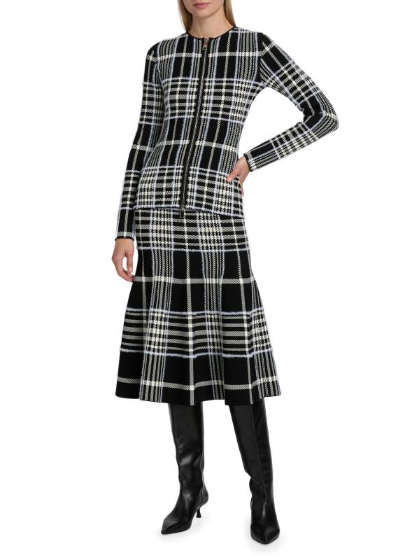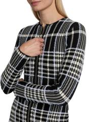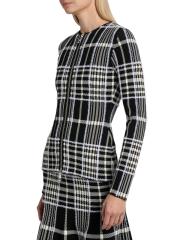تم تصميم كارديجان جرير هذا من براندون ماكسويل، المصنوع من قماش الجاكار الإيطالي المنقوش، برقبة على شكل جوهرة وسحّاب باتجاهين.