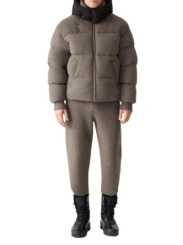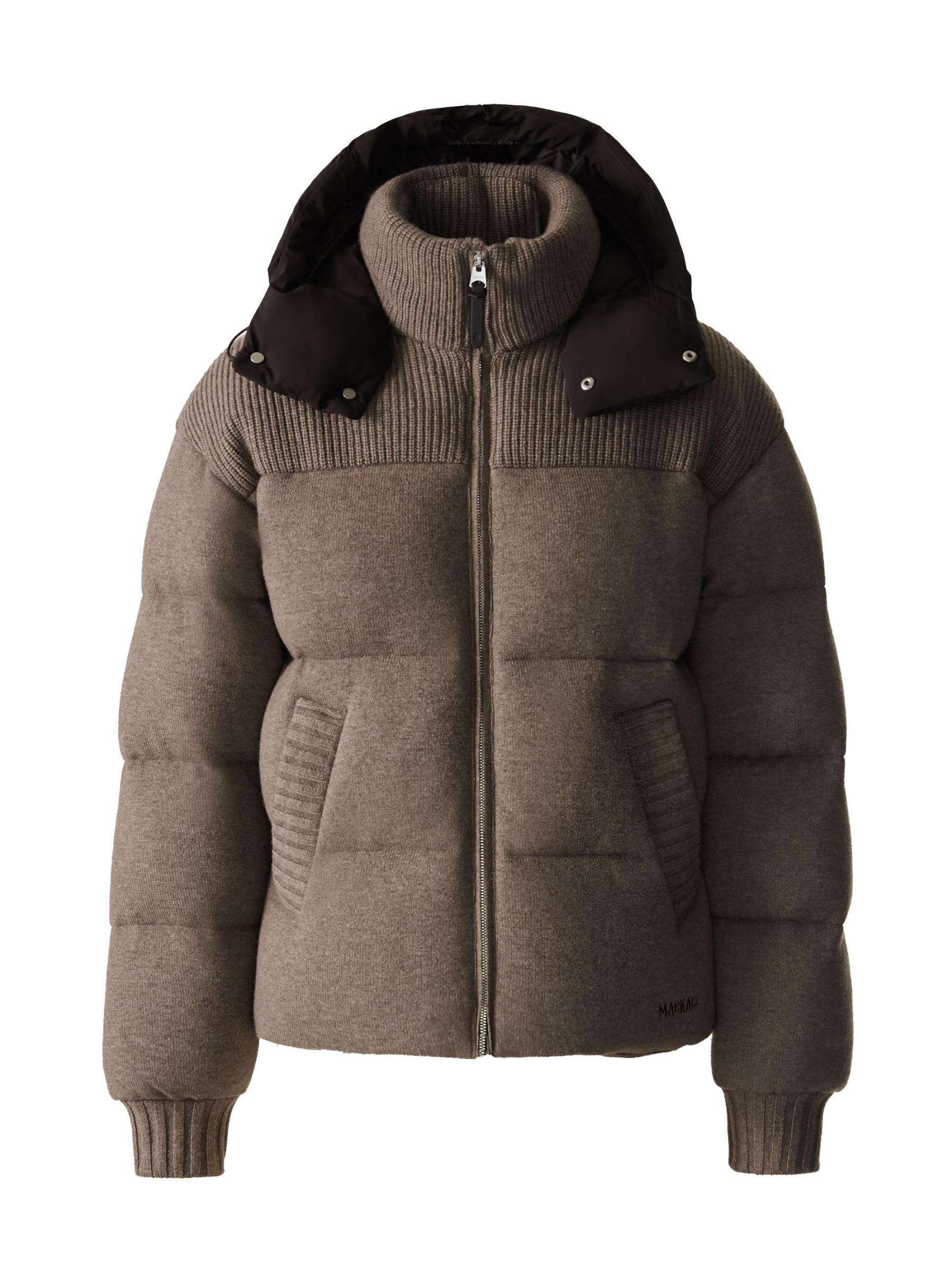 جاكيت Griffen Puffer من Mackage مصنوع من مزيج الصوف ومصمم بغطاء بلون مغاير قابل للإزالة وجيوب منزلقة وفتحات تهوية.