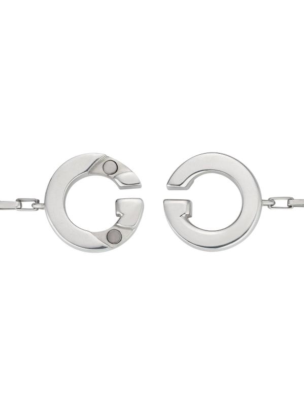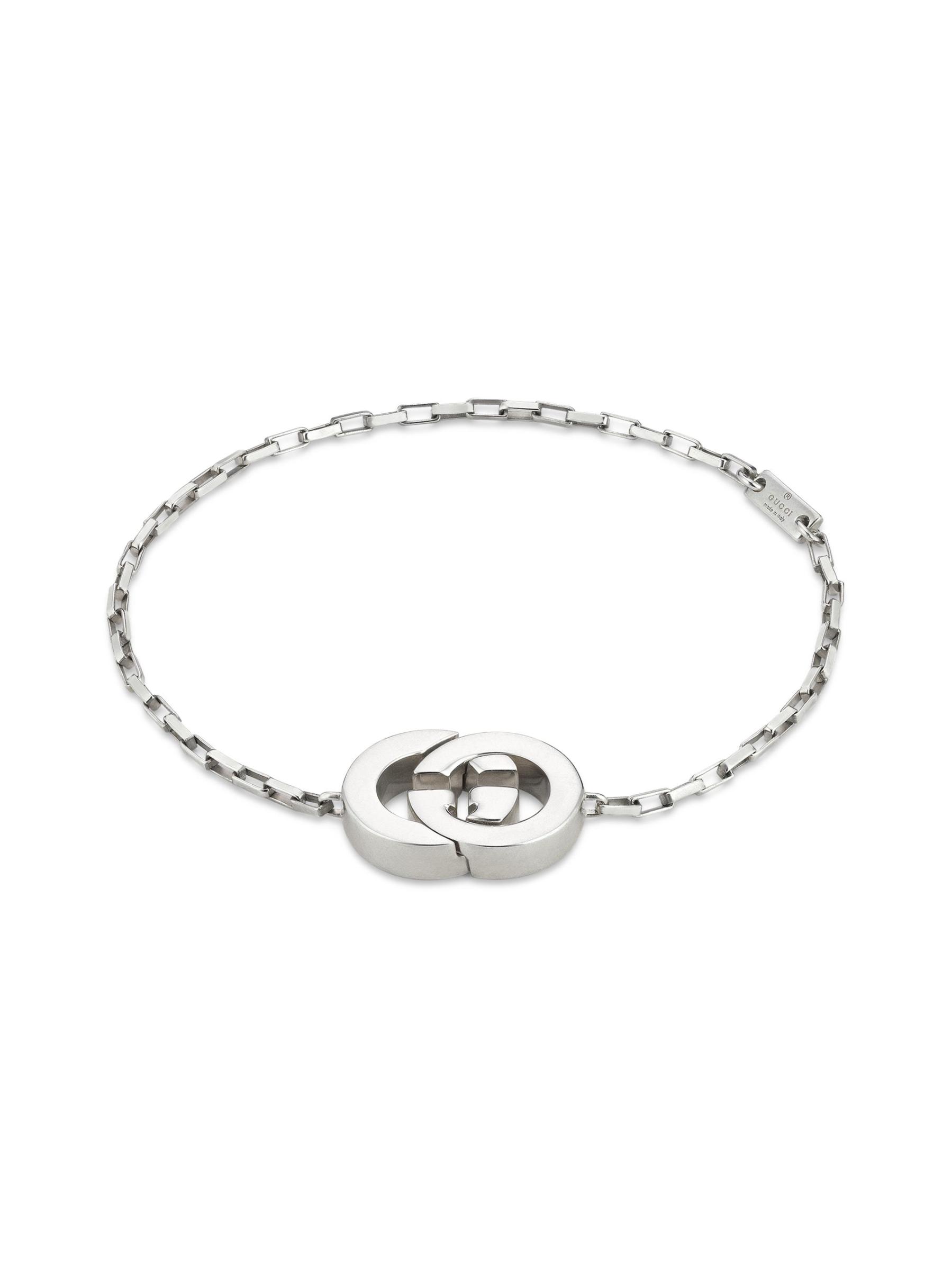 من مجموعة غوتشي المتشابكة. يتميّز هذا السوار المصنوع بمشبك ورقي من الفضة الإسترلينية من غوتشي بمشبك مغناطيسي مصبوب على شكل شعار G المتشابك الأيقوني للعلامة.
