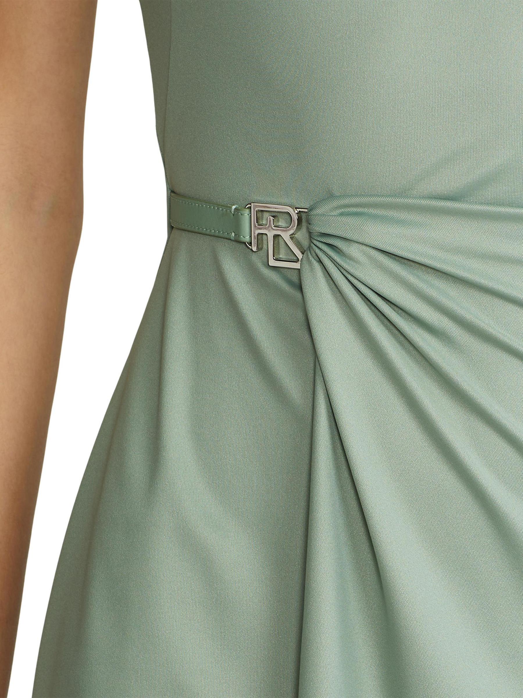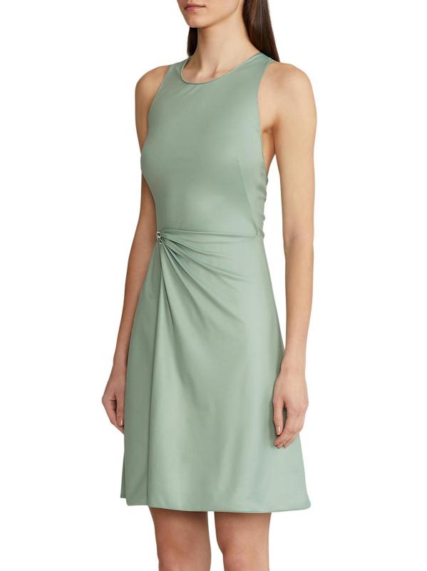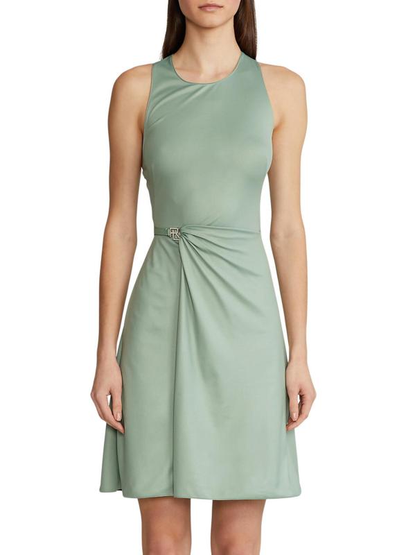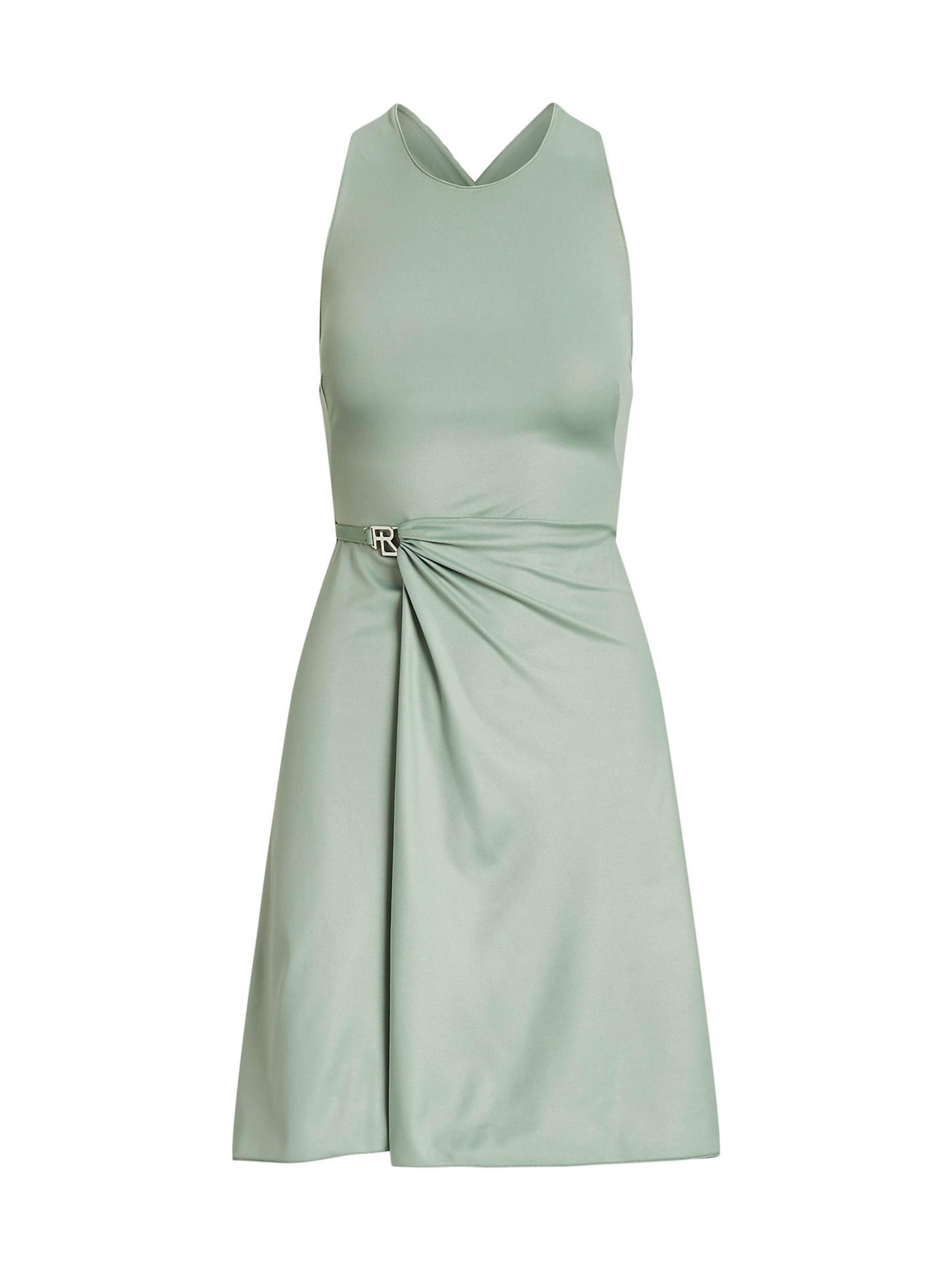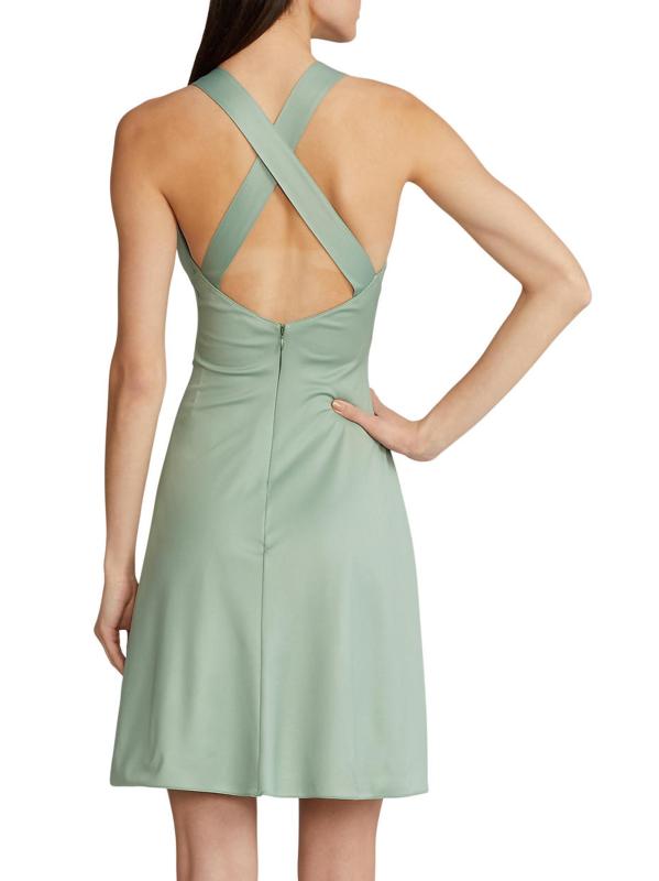 يتميّز فستان هادينغتون القصير الساحر من رالف لورين بتصميم منسدل للحصول على مقاس جذاب. تعمل الأحزمة المتقاطعة في الخلف على توحيد تفاصيل الحزام المصنوع من الجلد المدبوغ بإبزيم المونوغرام المميز.