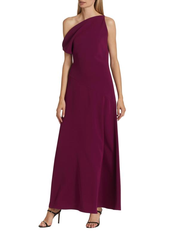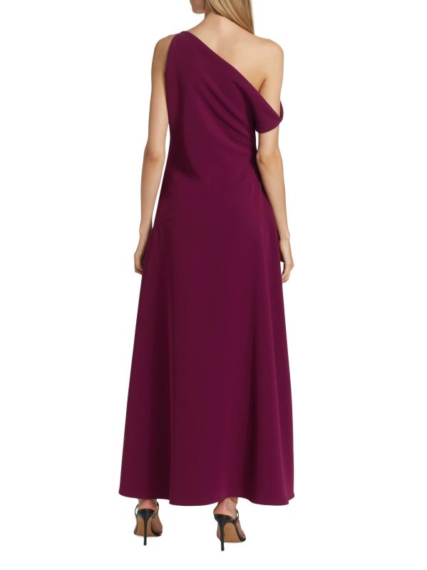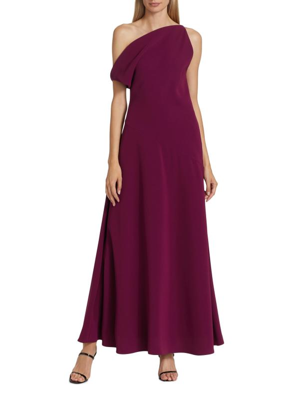 يتميز فستان هايلي من ديفو نيويورك بتصميم انسيابي غير متماثل، وهو مصمم بملمس انسيابي يصل إلى الكاحل.فتحة رقبة غير متماثلة على الكتف حزام للكتف أكمام بقبعة منسدلة سحّاب جانبي مخفي ثلاثي الأسيتات/البوليستر تنظيف جاف صُنع في الولايات المتحدة الأمريكية