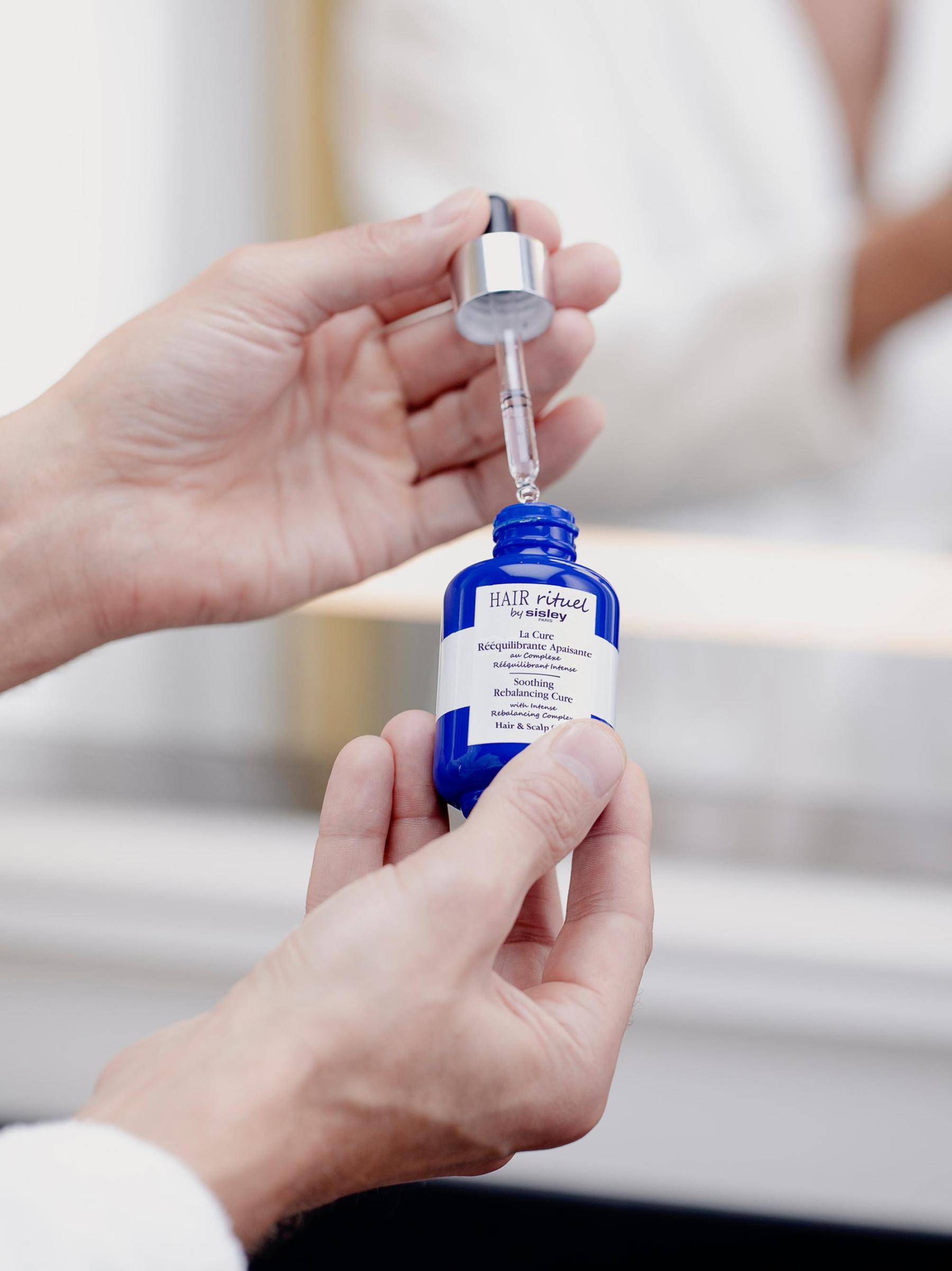 ضعي 4 ماصات، مقطعًا تلو الآخر، على الشعر الجاف أو الرطب. قم بالتدليك بأطراف الأصابع. لا تشطف. استخدم 3 مرات في الأسبوع لمدة 3 أسابيع. في حالة ملامسة العينين، اشطفي جيدًا بالماء النظيف. للحصول على أفضل النتائج، استخدمه مع شامبو Rebalancing Soothing 3 مرات في الأسبوع. بالنسبة لبرنامج الصيانة، استخدم Rebalancing Cure مرتين في السنة مع شامبو إعادة التوازن.