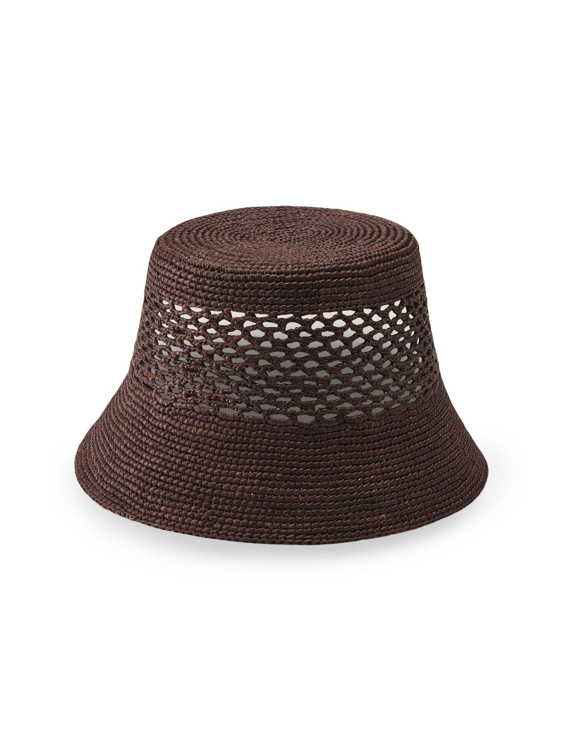 تتميز قبعة هانا بوكيت المصنوعة يدويًا من الرافيا من هيلين كامينسكي بأعمال شبكية راقية وحافة مقلوبة.