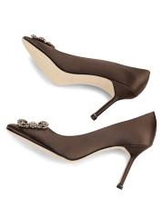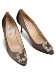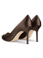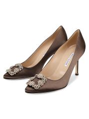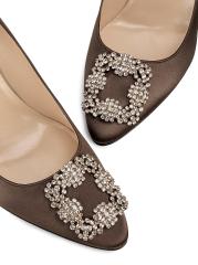 تتميز أحذية Hangisi هذه من Manolo Blahnik بلمسة نهائية من الساتان مع لمسة مزينة بالكريستال على المصباح.