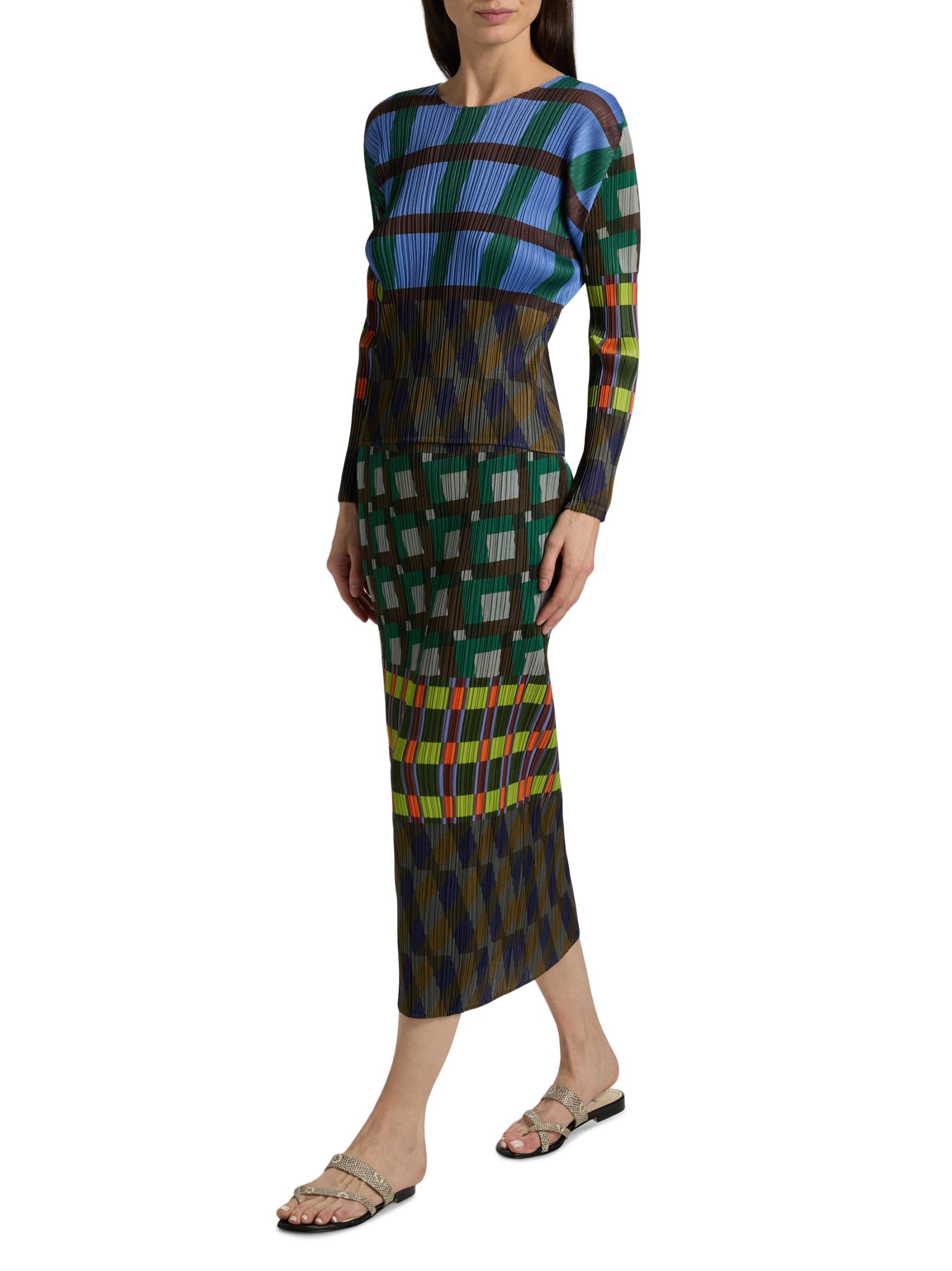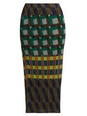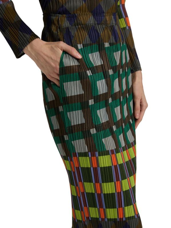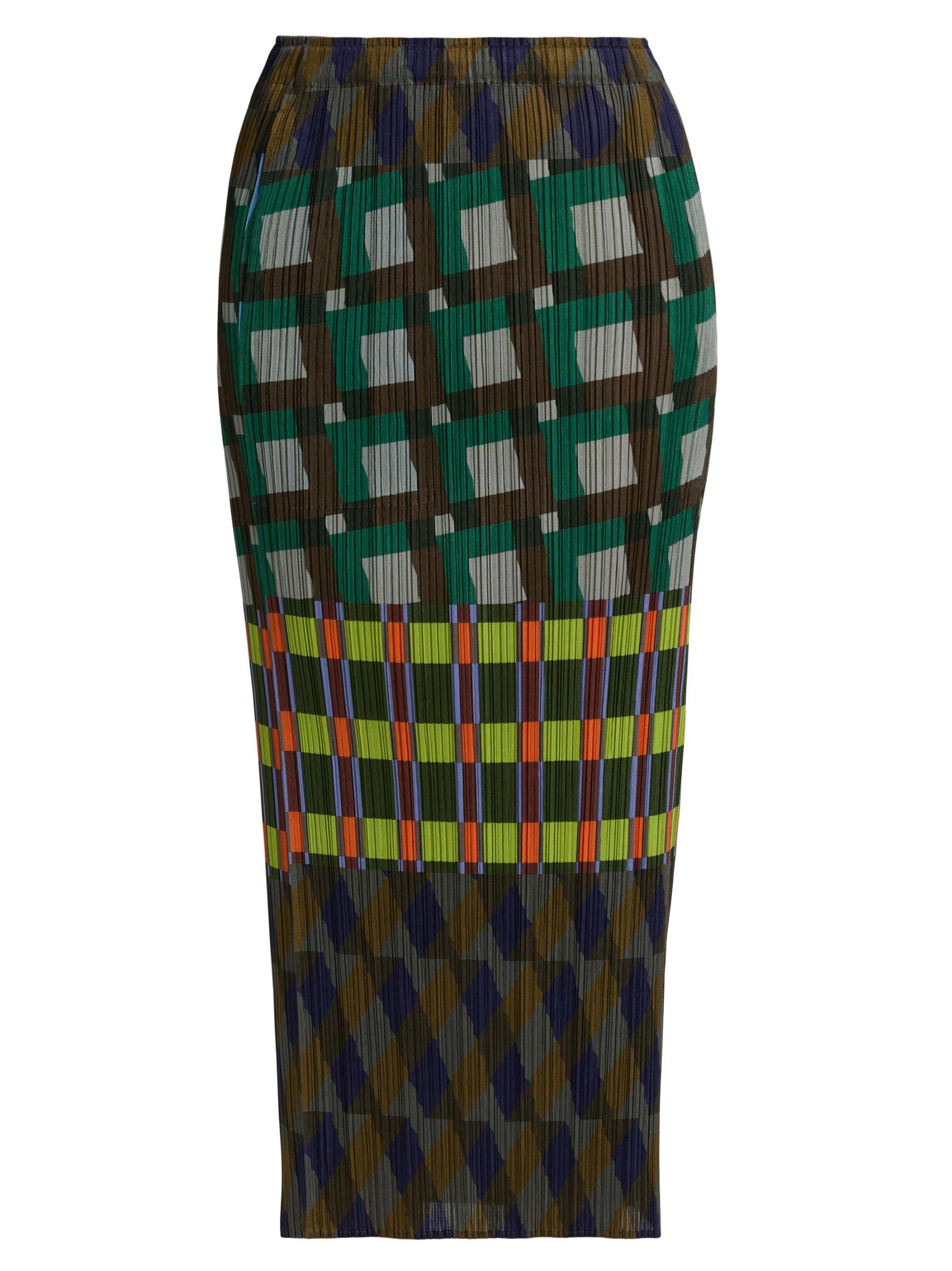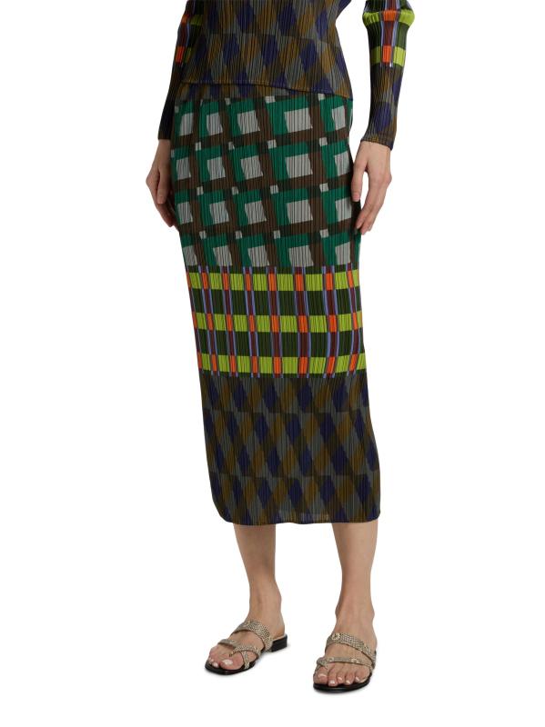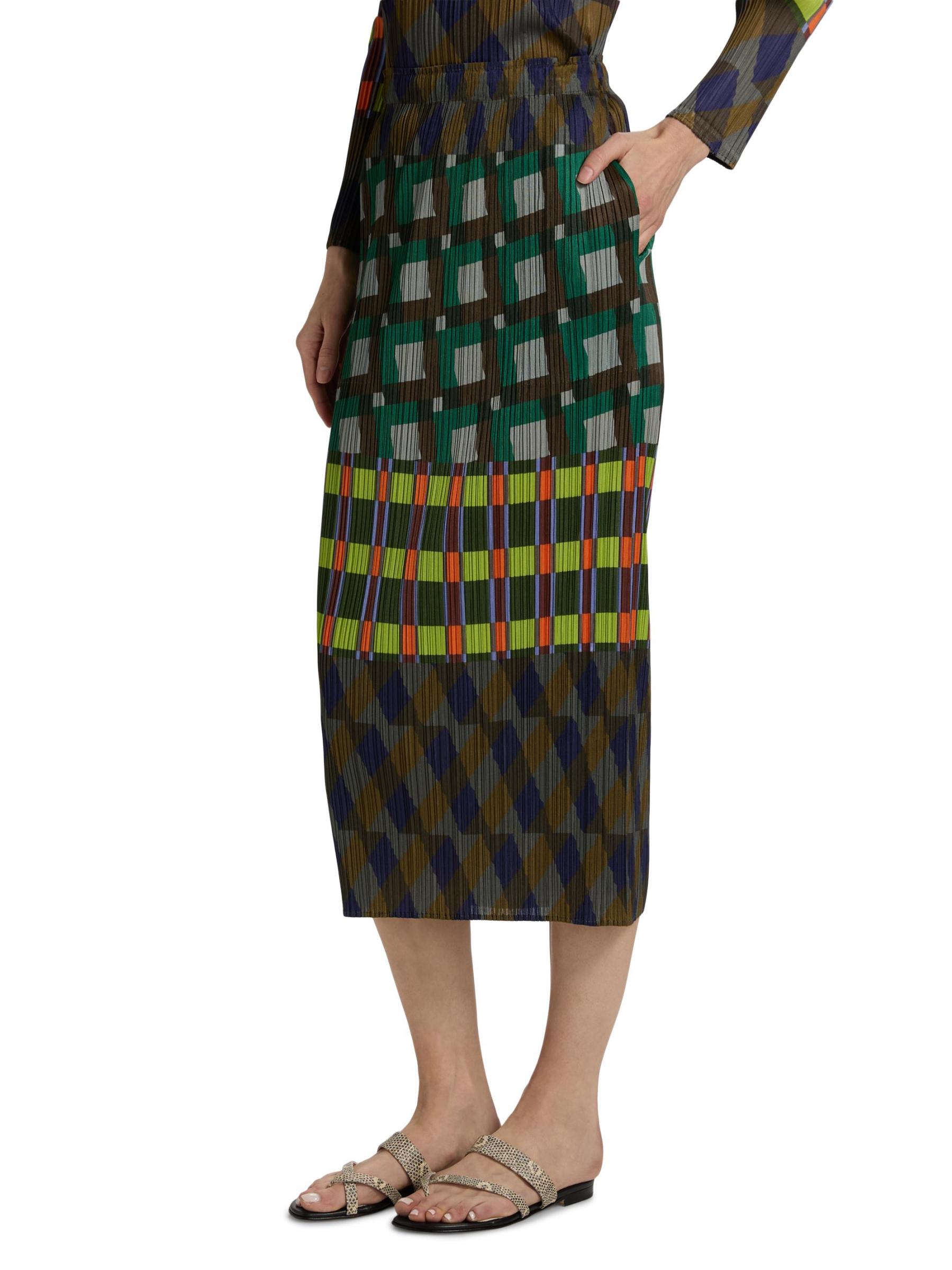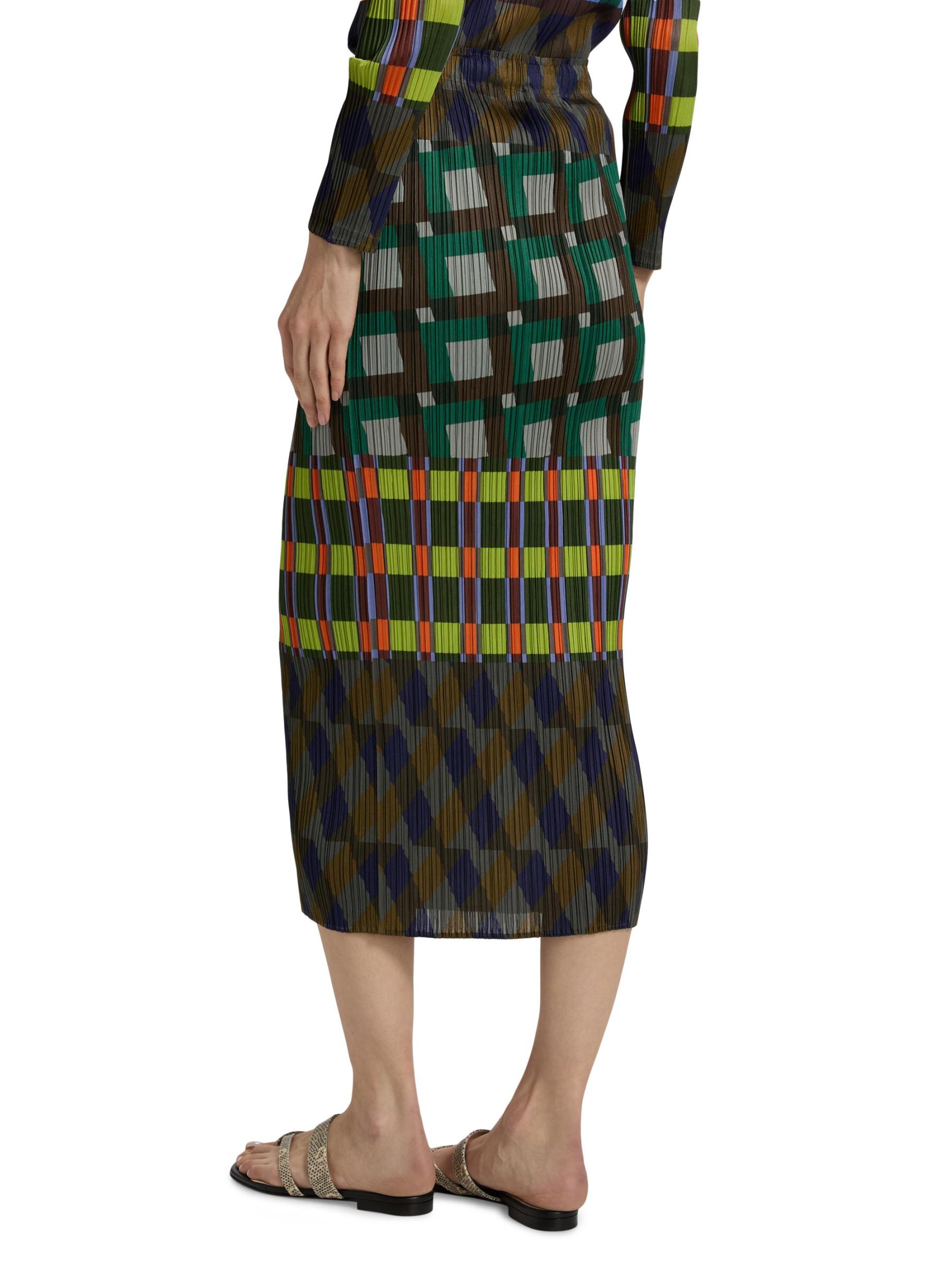 تتميز تنورة هارموني المتوسطة هذه المصنوعة في اليابان من Pleats Please Issey Miyake بطيات كلاسيكية وأنماط هندسية مختلفة.