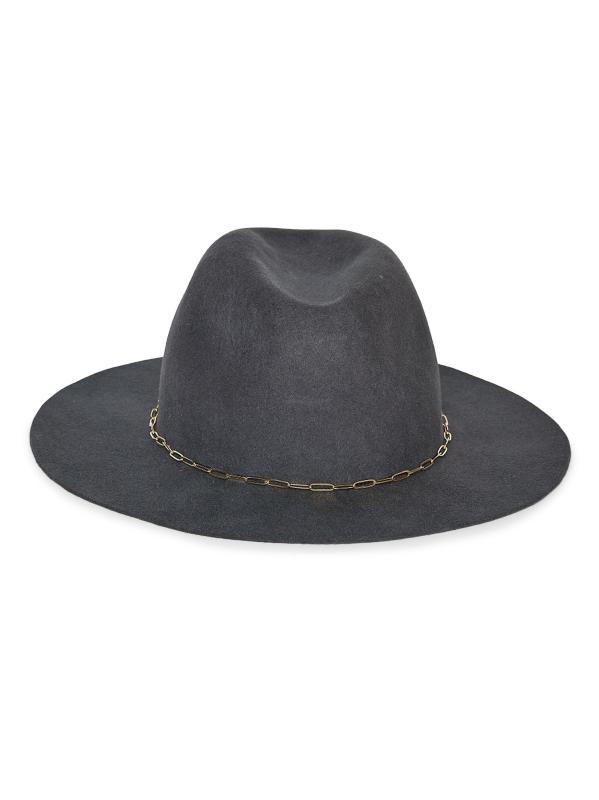 صُنعت ساعة Harper fedora من Hat Attack من شعر الصوف وتم تزيينها بزخرفة على شكل سلسلة باللون الذهبي.