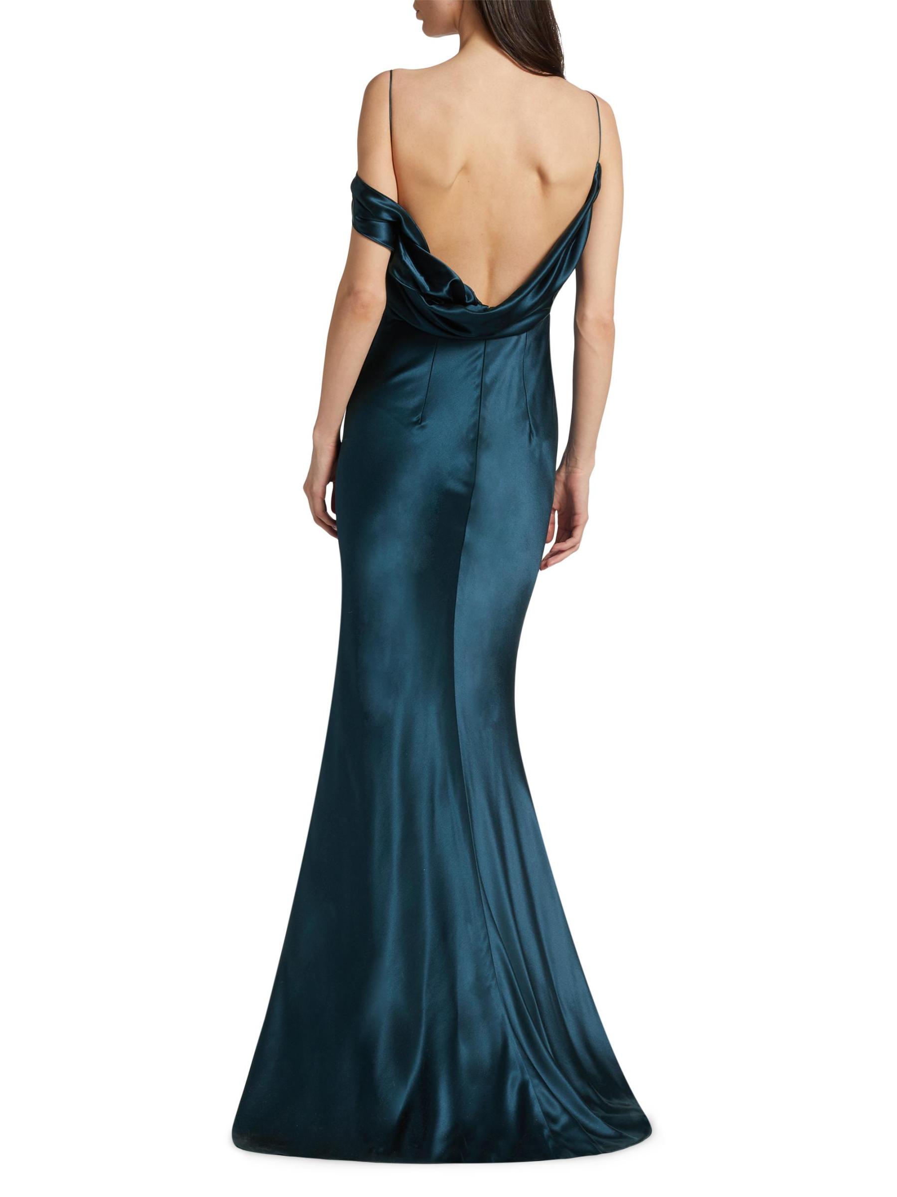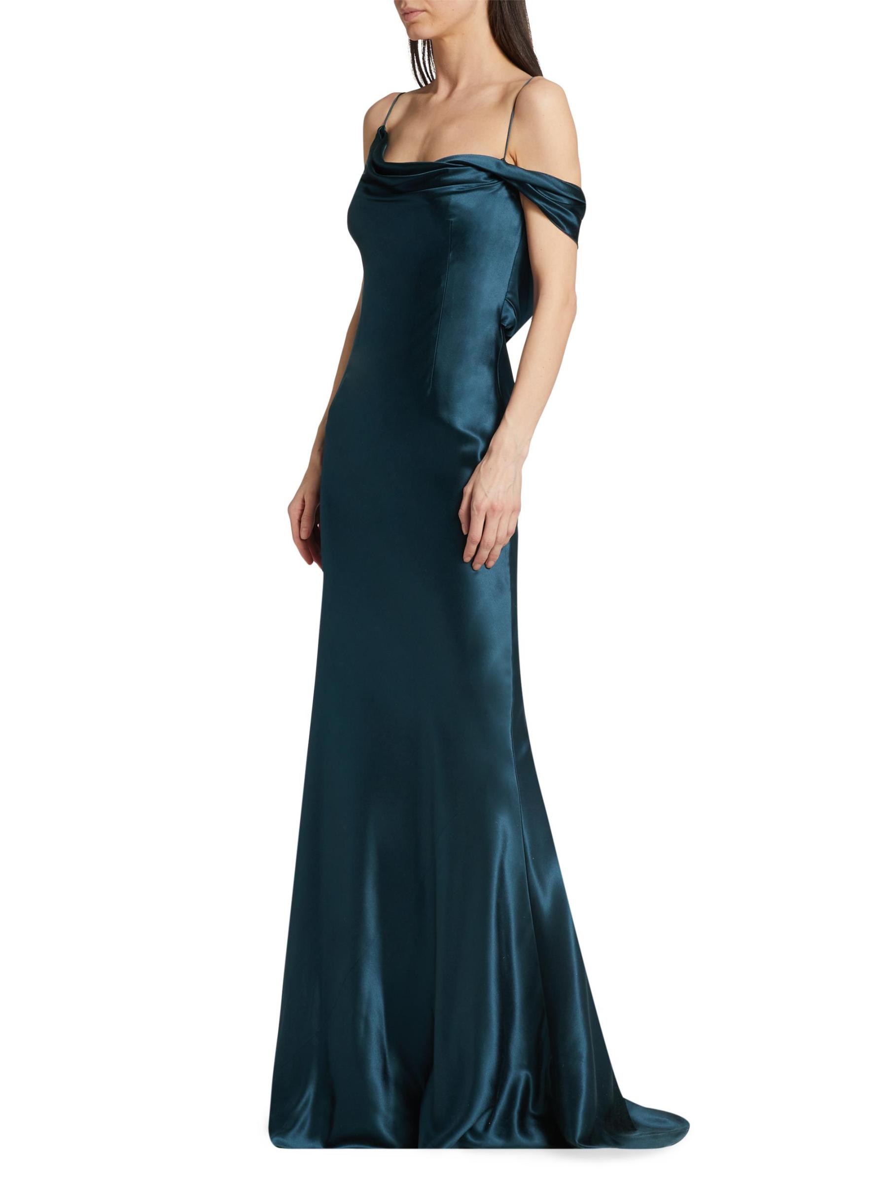 حصري. يتميز فستان هاربر المفتوح الكتفين من DANIELLE FRANKEL بلمسة ساتانية مذهلة وظهر منخفض أنيق.