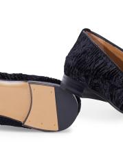 صُنعت أحذية Harrier من Paul Stuart من المخمل المنقوش مع زخرفة جلدية. يتميز هذا الطراز الكلاسيكي بكعب عريض مكدس.
