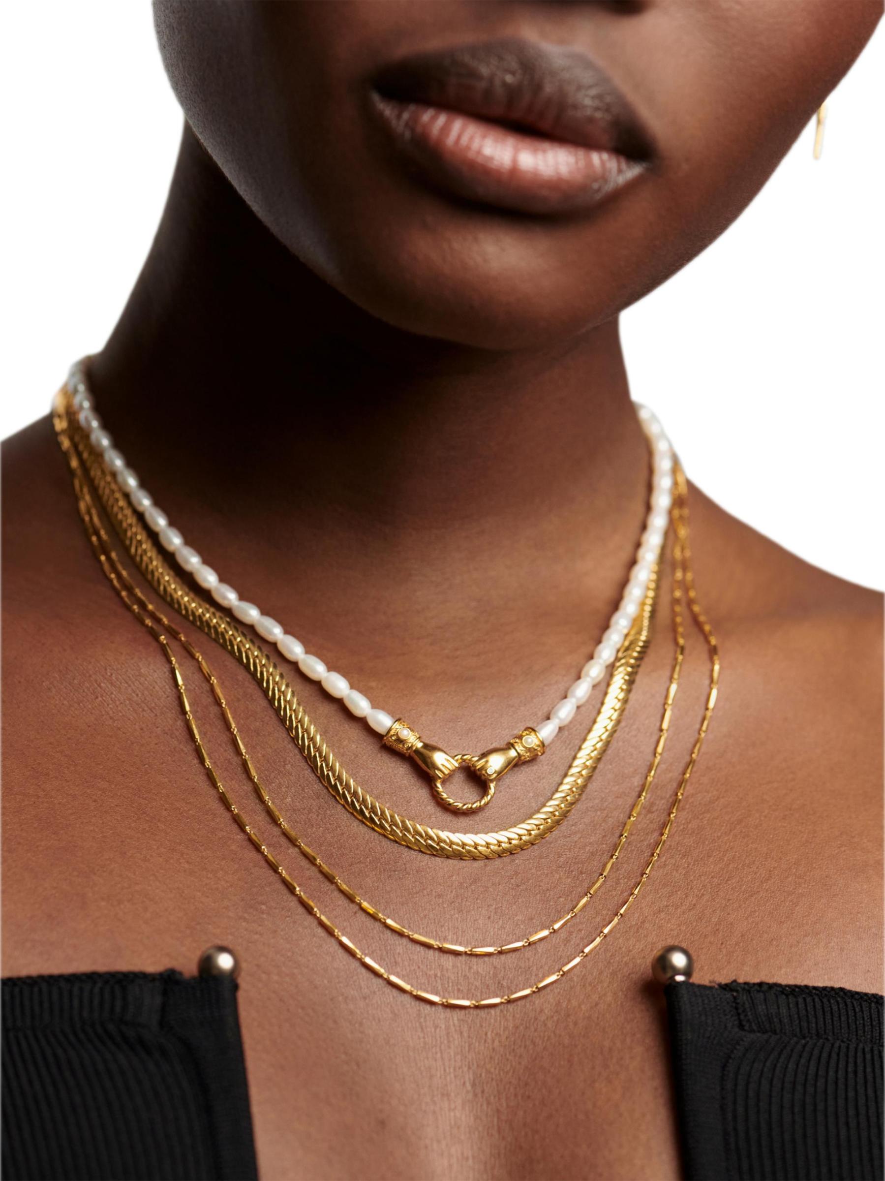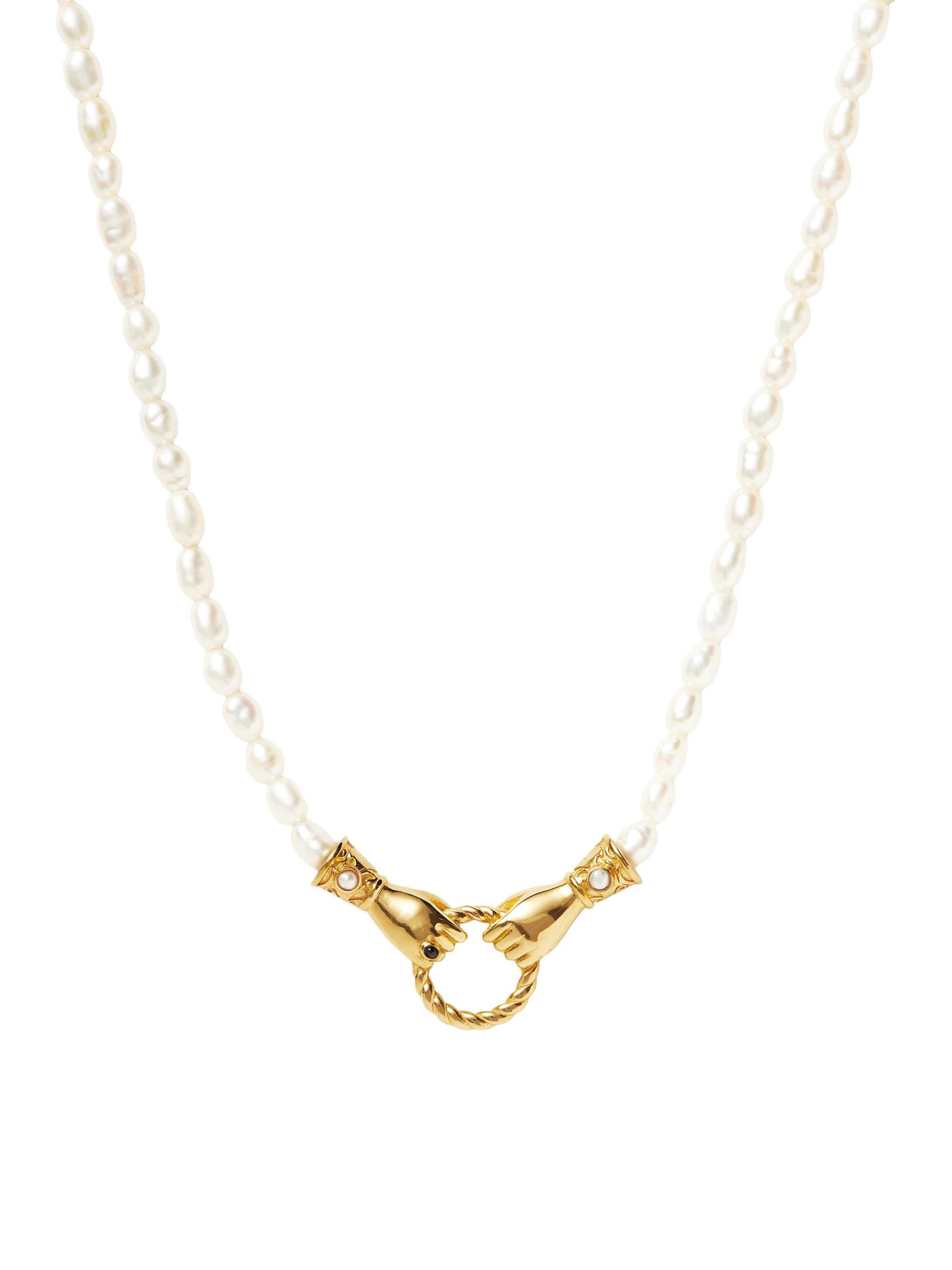 قلادة هاريس ريد x Missoma in Good Hands المطلية بالذهب عيار 18 قيراطًا والعقيق الأسود ولؤلؤ المياه العذبة المستزرعة