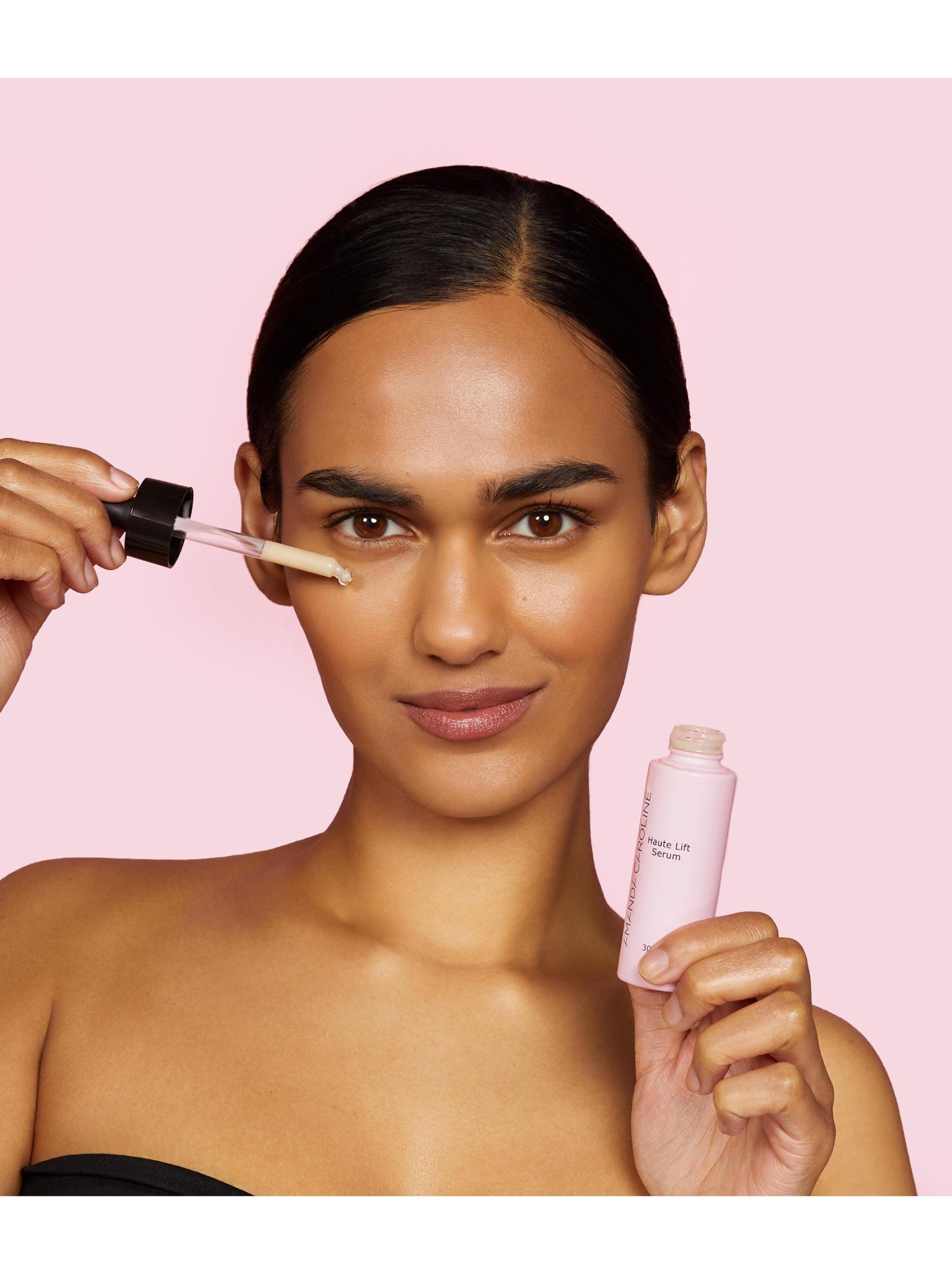 ضعيه صباحًا ومساءً بعد استخدام مصل Haute Lift على الوجه والرقبة والصدر بحركة تصاعدية.