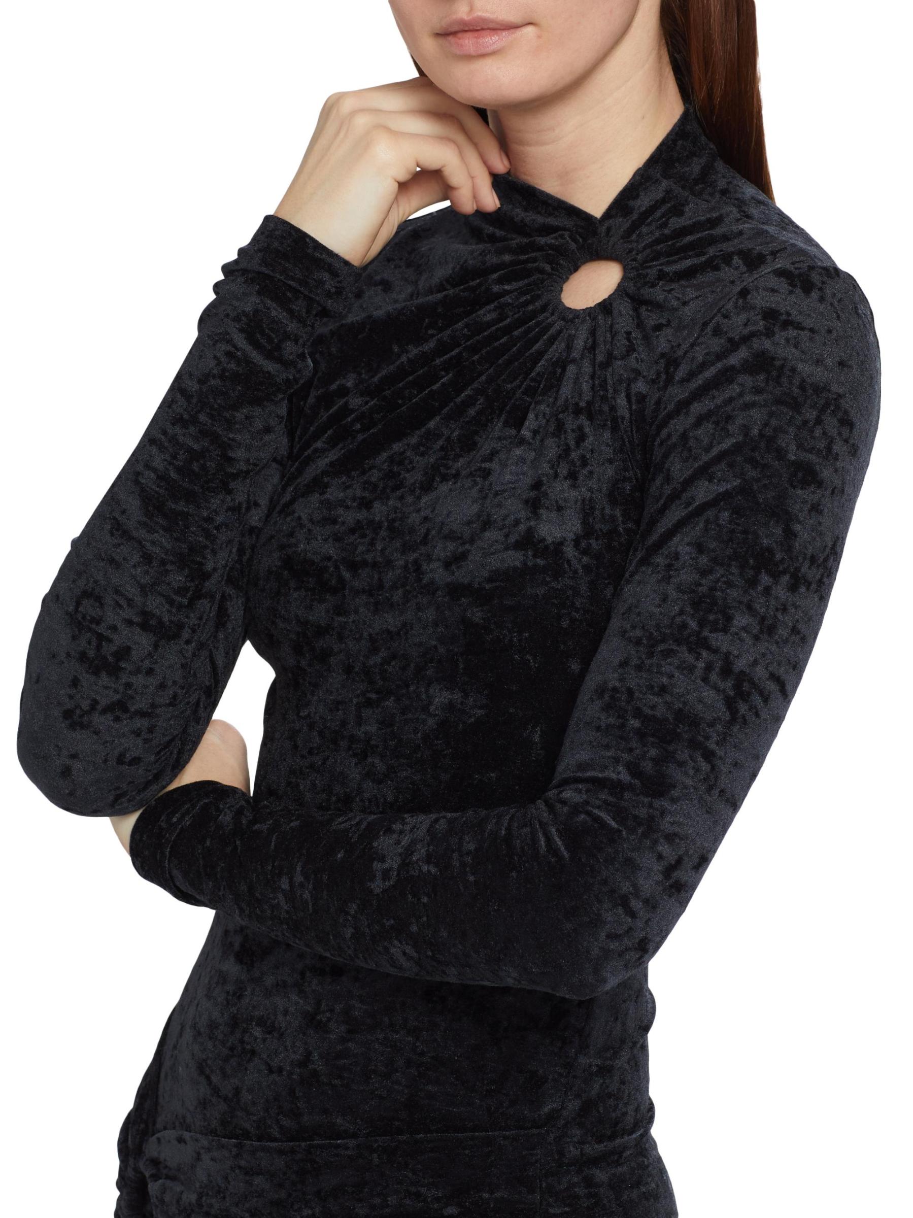 يتميز فستان هافانا الصغير من إيزابيل مارانت إيتويل، الذي تم تشطيبه بالمخمل المسحوق، بتصميم ملتوي مع لمسة ملفوفة وحلقات على شكل حرف O.رقبة مدورة وهمية أكمام طويلة تسحب 94% بوليستر/ 6% إليستين تنظيف جاف مستوردة