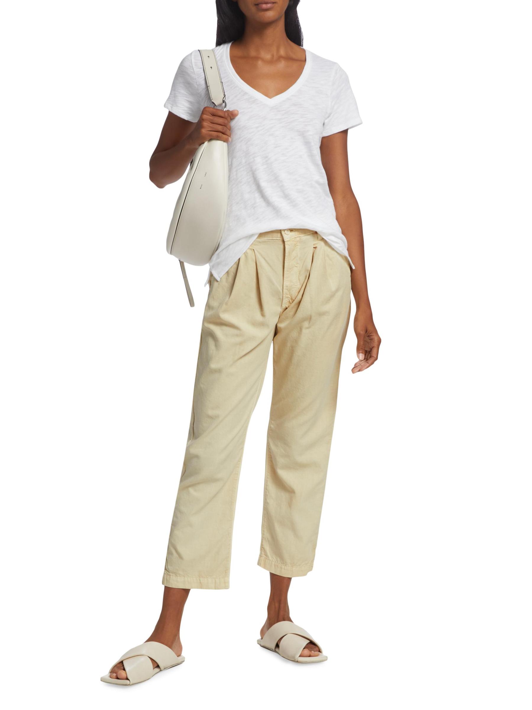 صُنع بنطال Hayden من NSF من نسيج قطني قصير بخصر مرتفع. الطيات الأمامية تحدد هذا النمط المريح.حلقات الحزام زيب فلاي إغلاق بأزرار جيوب جانبية مائلة جيبان خلفيان قطن بنسبة 100% يُغسل في الغسالة صُنع في الولايات المتحدة الأمريكية
